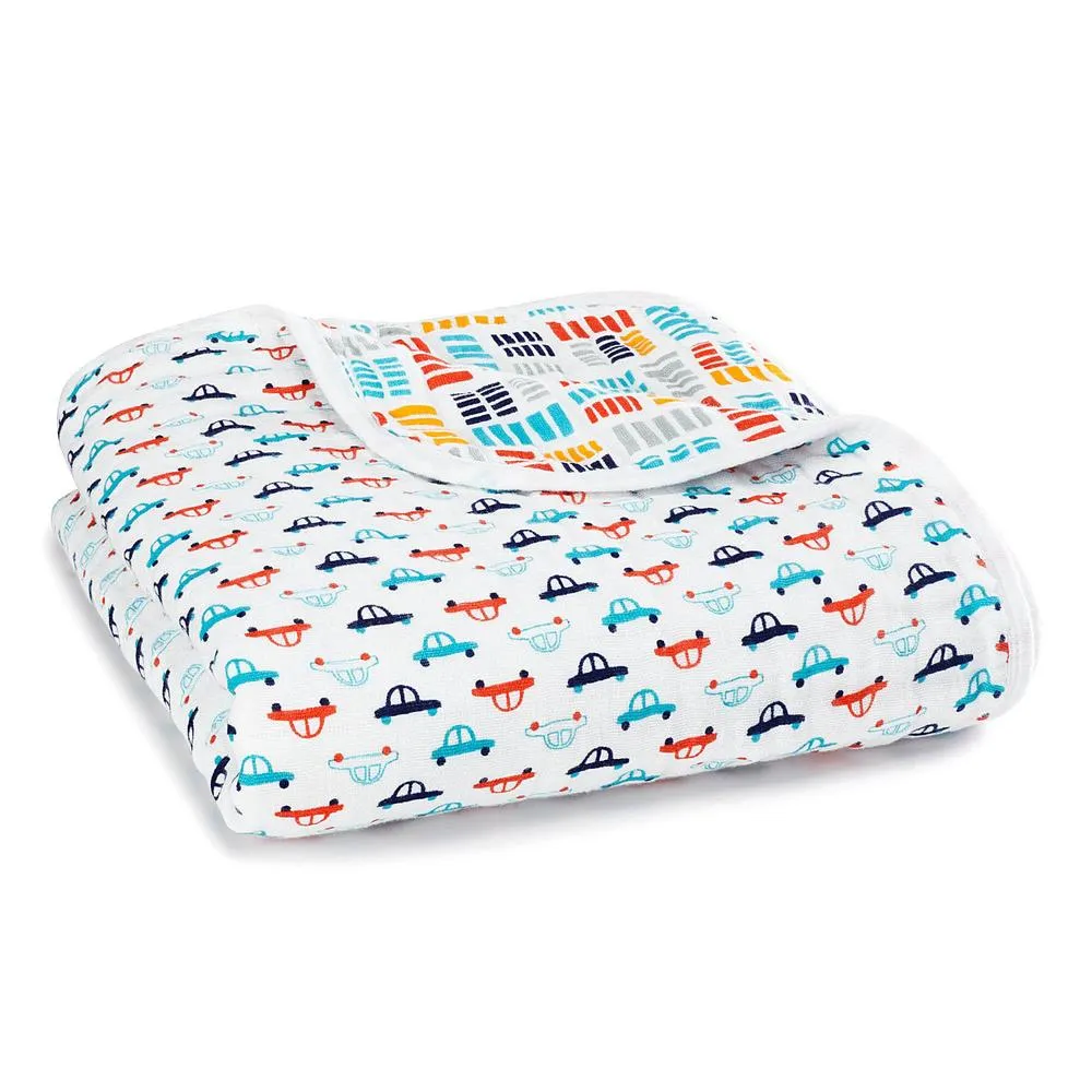 The classic dream blanket features four layers of 100% cotton muslin for our softest, most plush baby blanket. Its uses go beyond cuddling, as it also makes a snuggly surface to lay your little one on no matter where the day takes you—a park, the beach or just playing around on the floor. And when your dream blanket gets dirty, not to worry. Machine washable, it stays soft wash after wash.