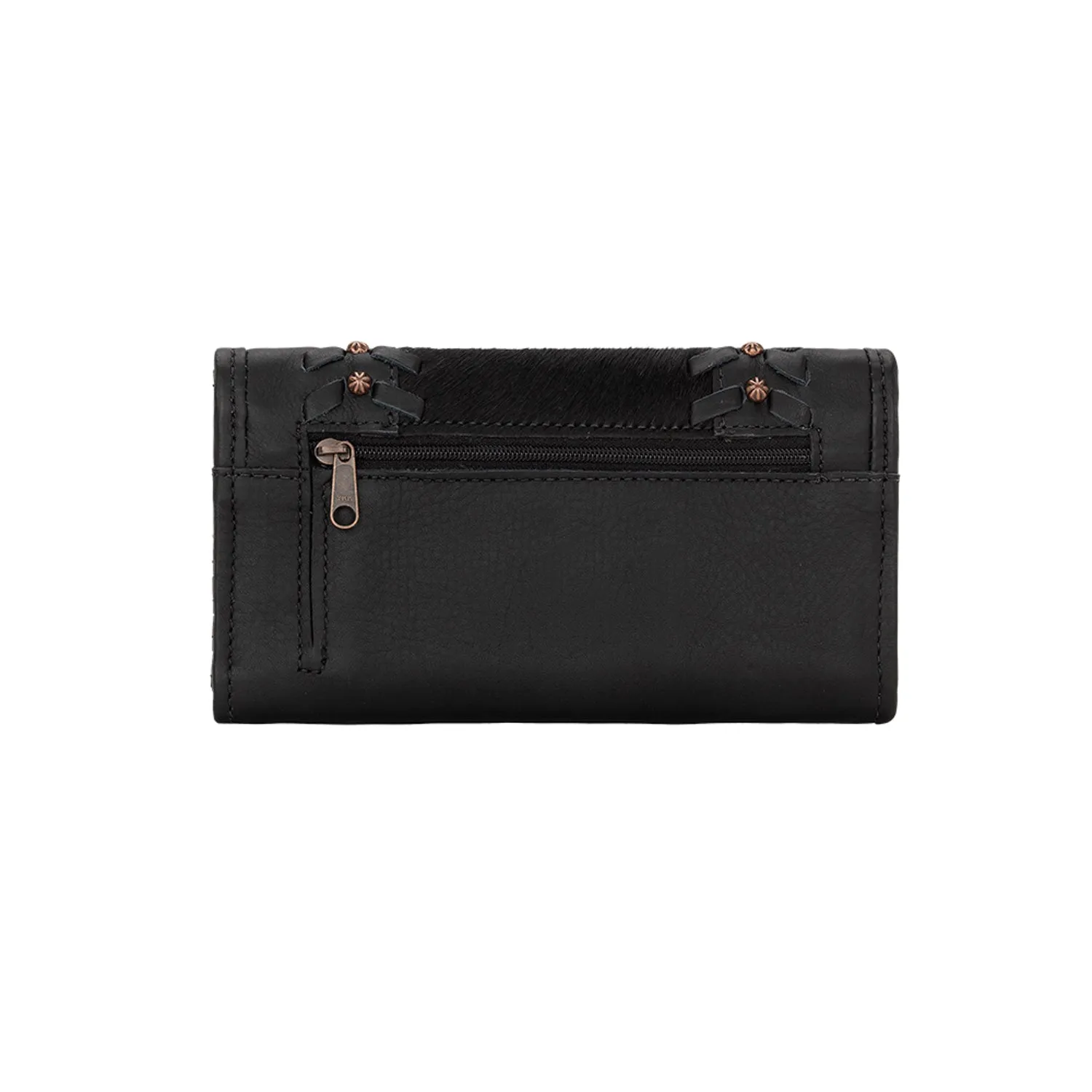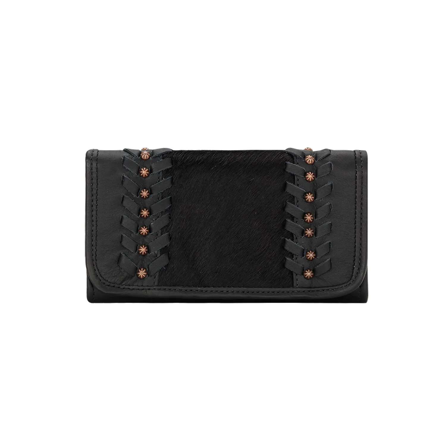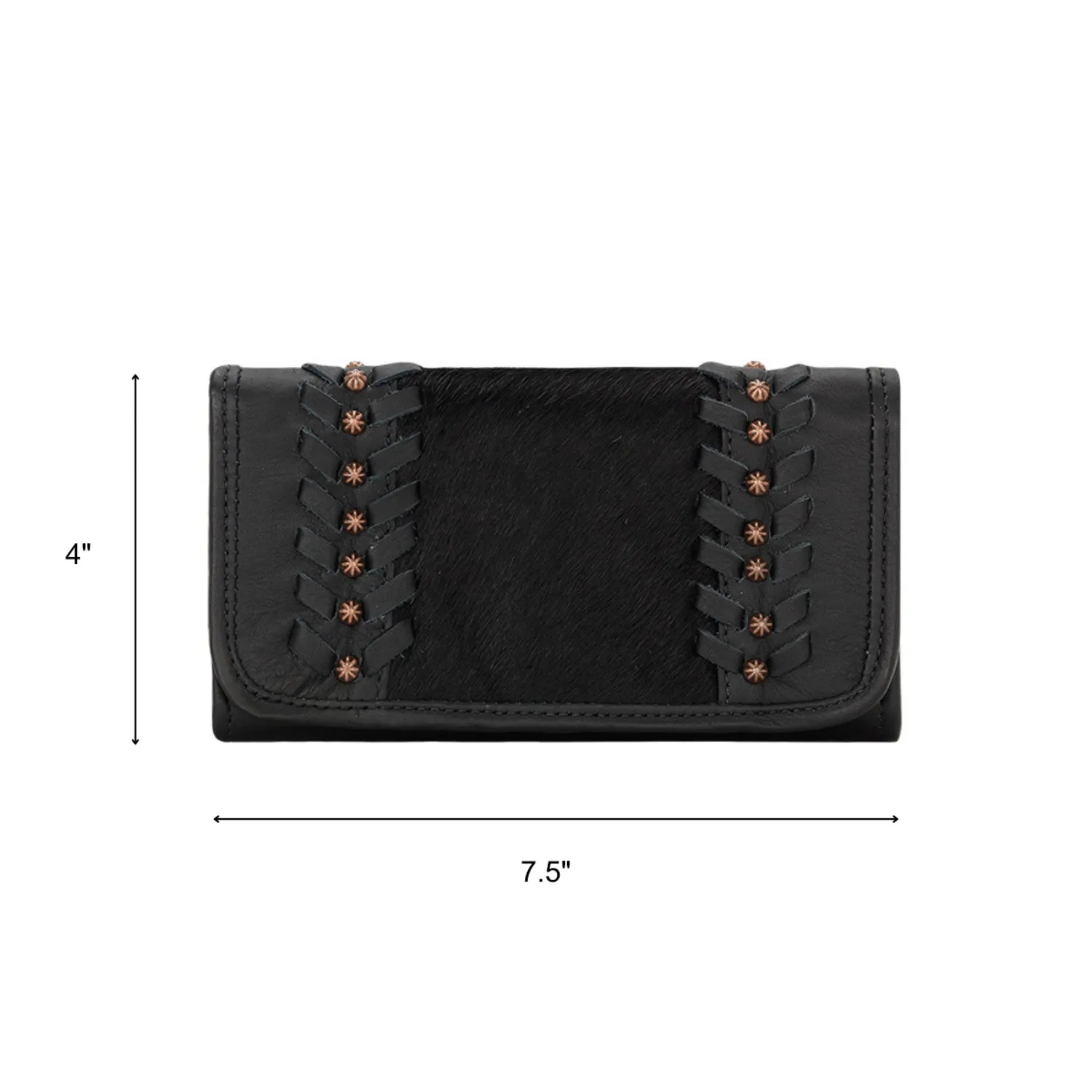 American West Womens Cow Town Black Hair-On Leather Trifold Wallet