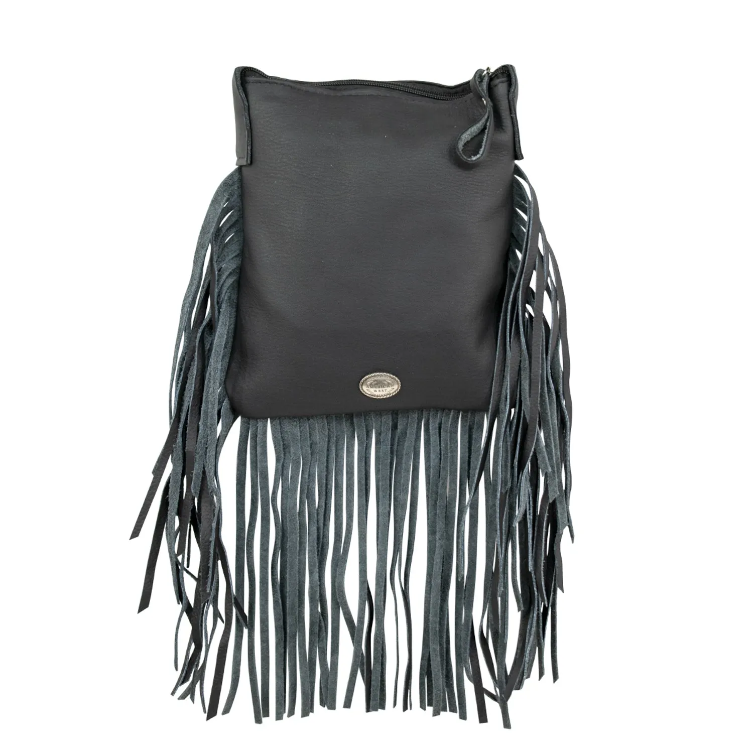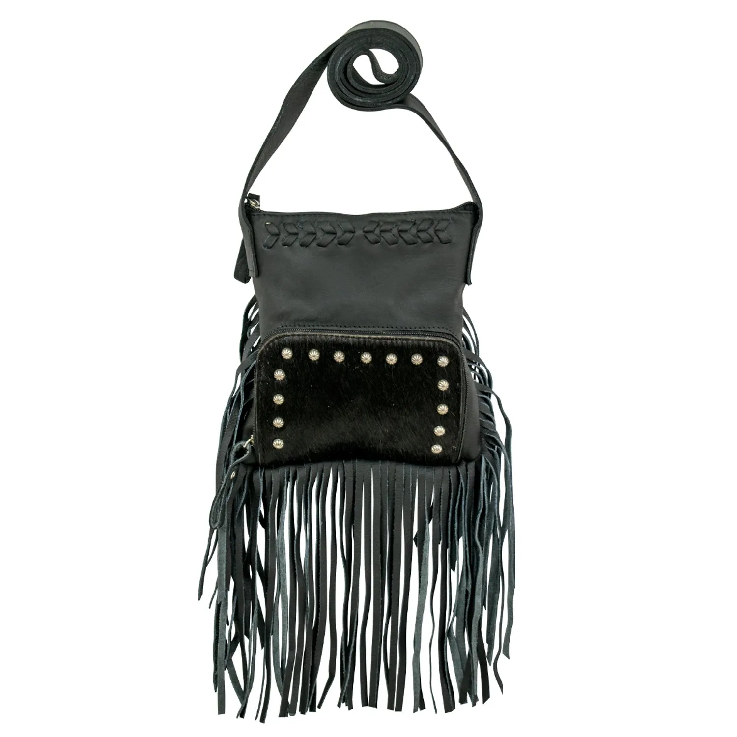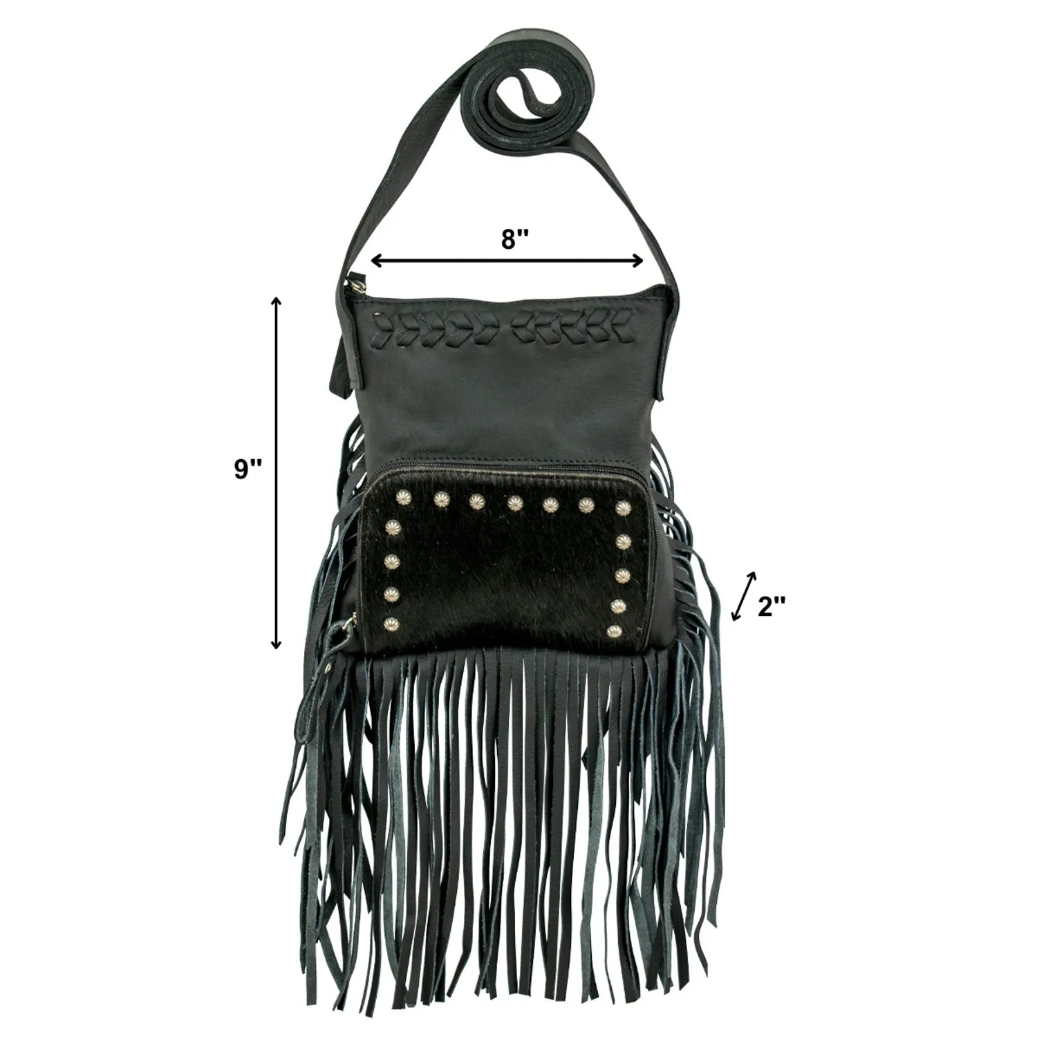 American West Womens Fringed Cowgirl 8in Black Hair-On Leather Crossbody Bag
