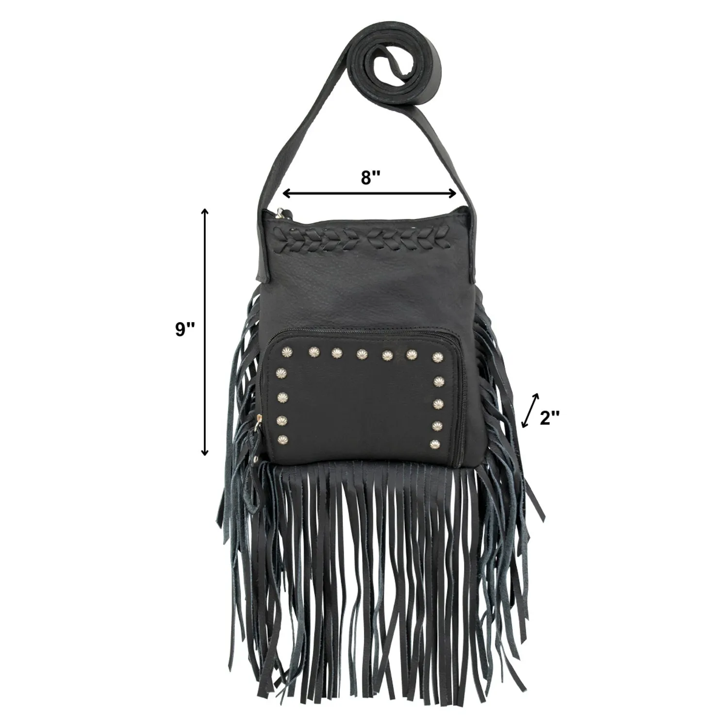 American West Womens Fringed Cowgirl 8in Black Leather Crossbody Bag