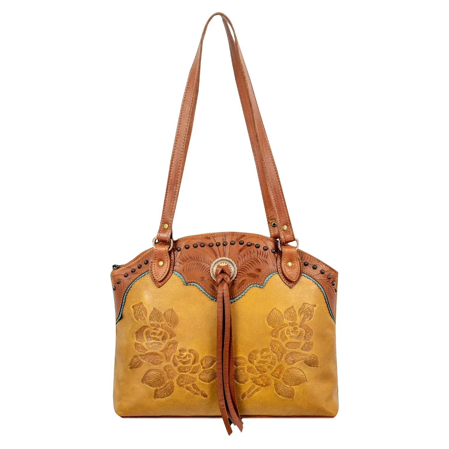 American West Womens Texas Rose 14in Natural Tan Leather Handbag Bag