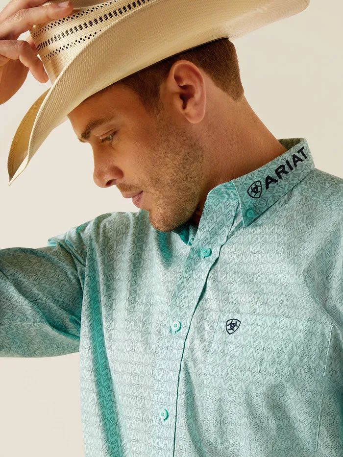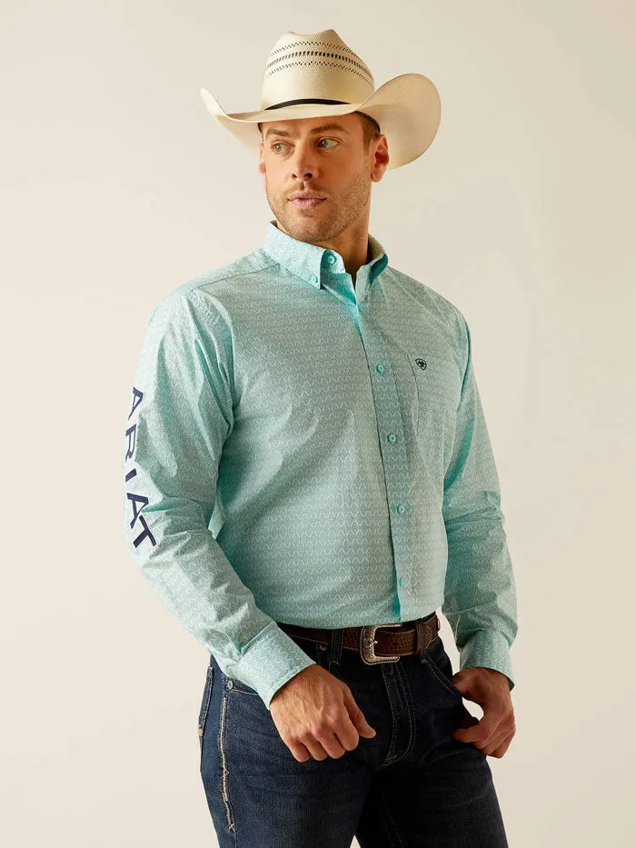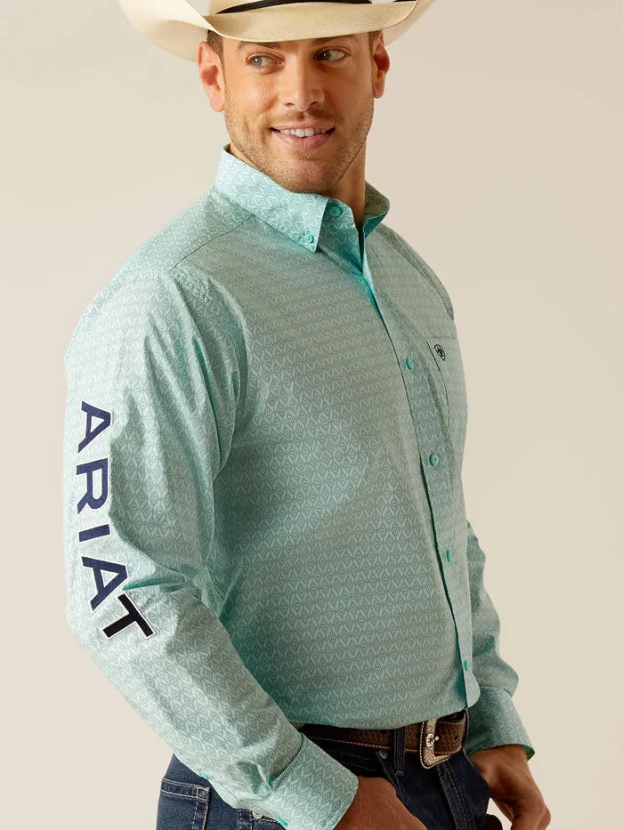 Ariat 10048394 Mens Team Gian Classic Fit Shirt Light Aqua