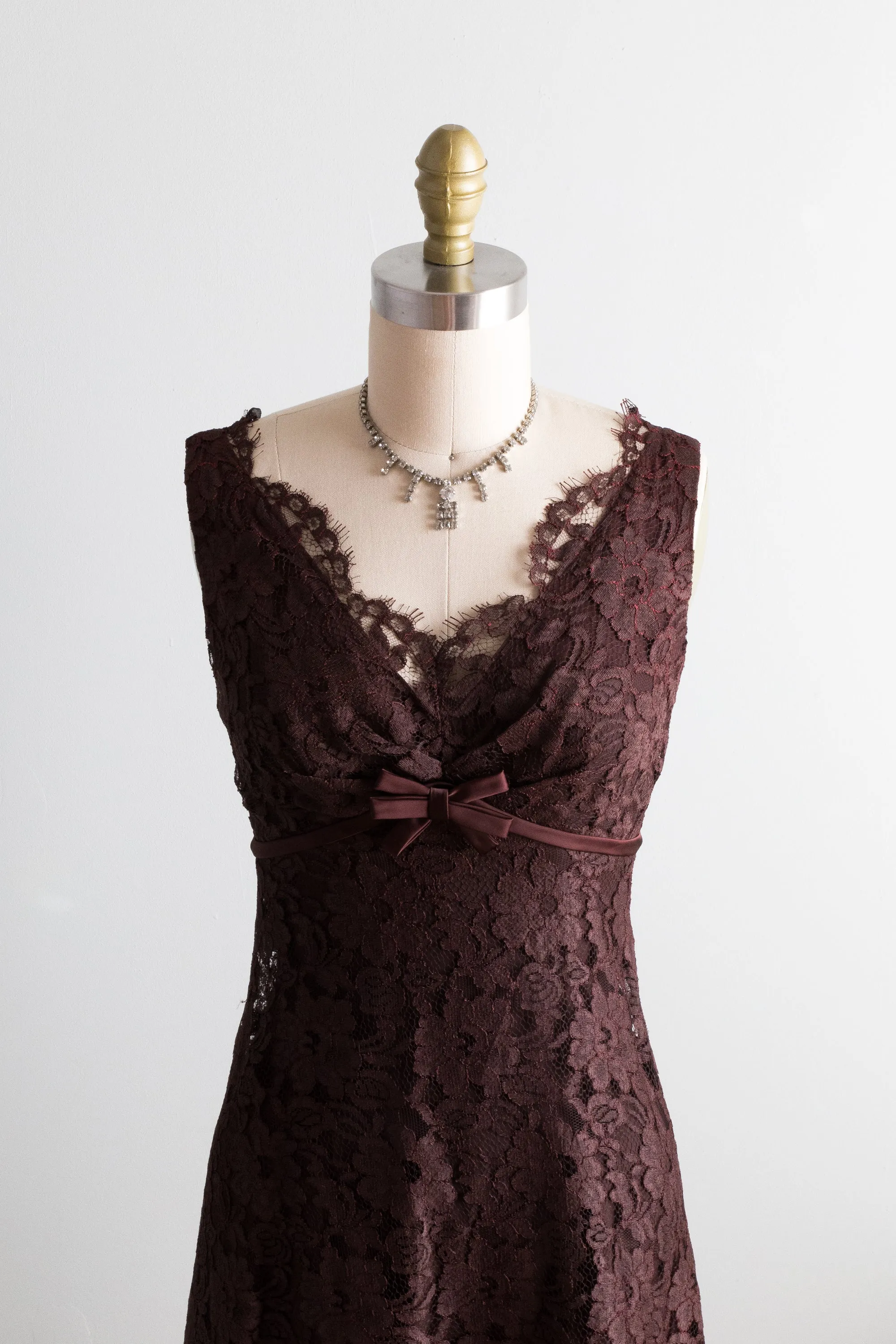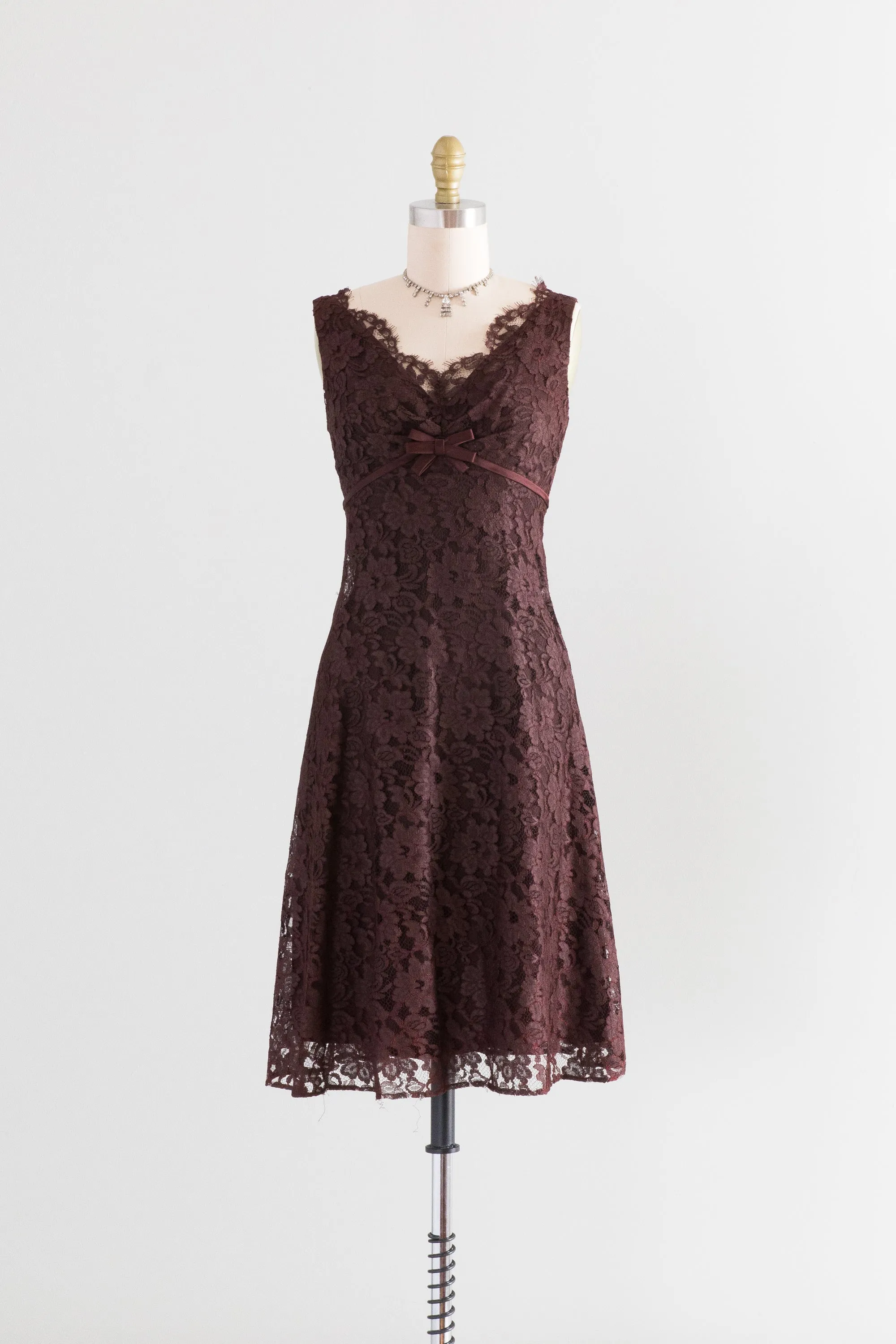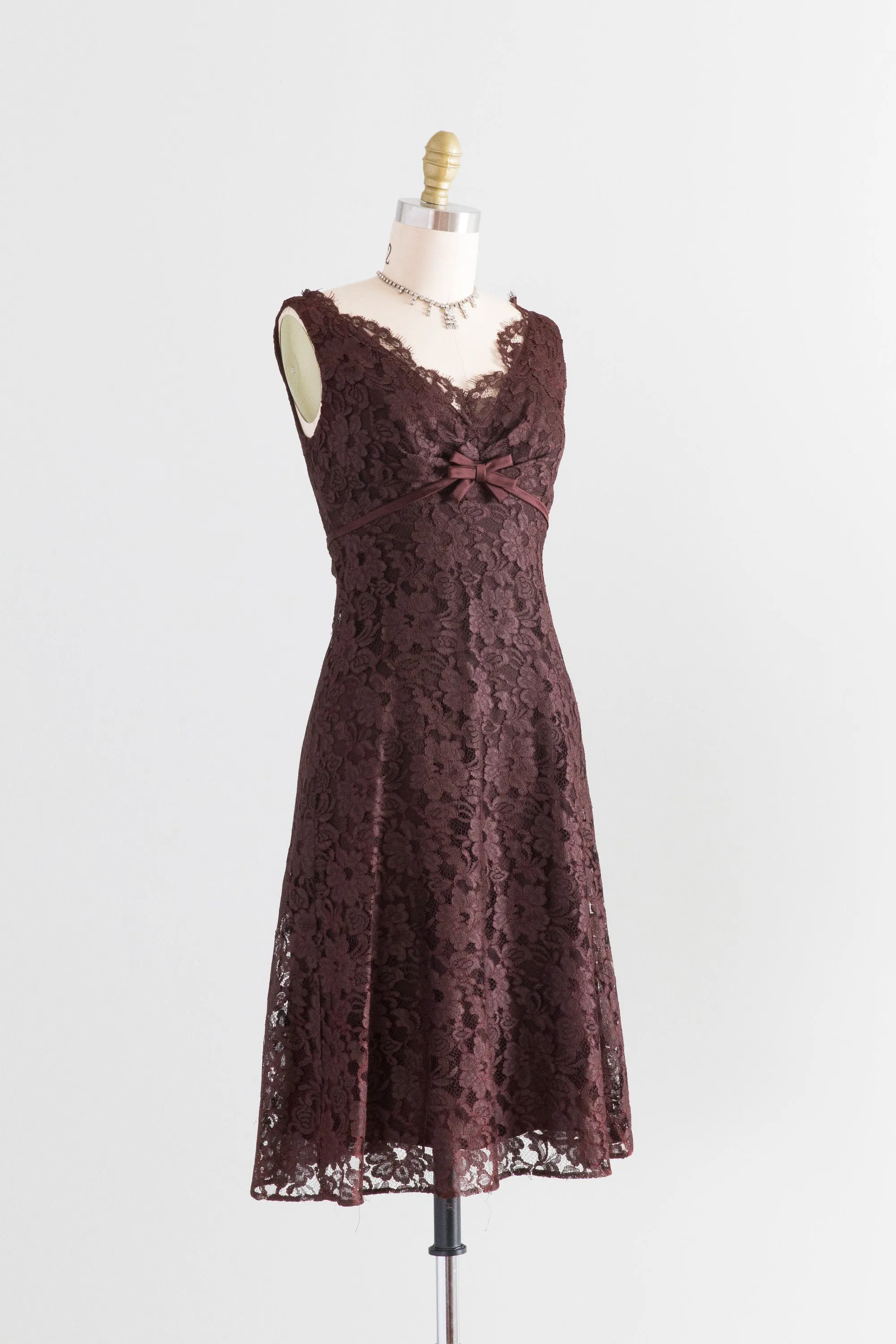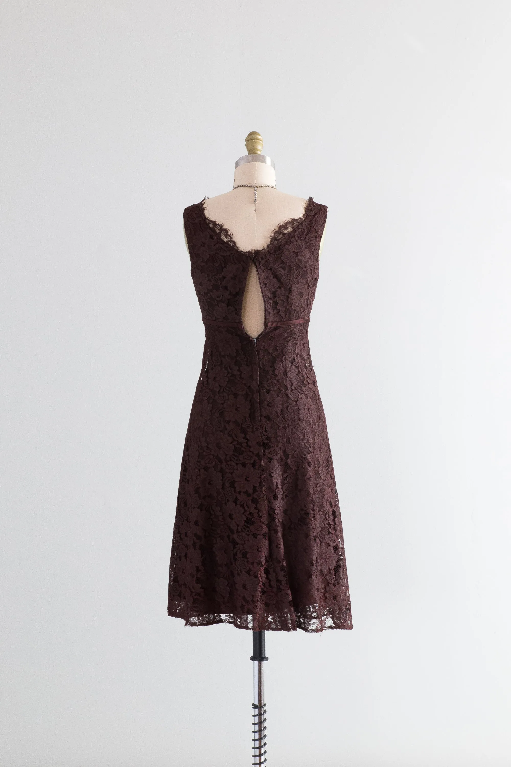 Darling 1960's fine lace cocktail dress from Saks fifth Ave. Fitted at the bust and accented with a bow, with an aline skirt that falls at the knee. Fully lined and in excellent condition.