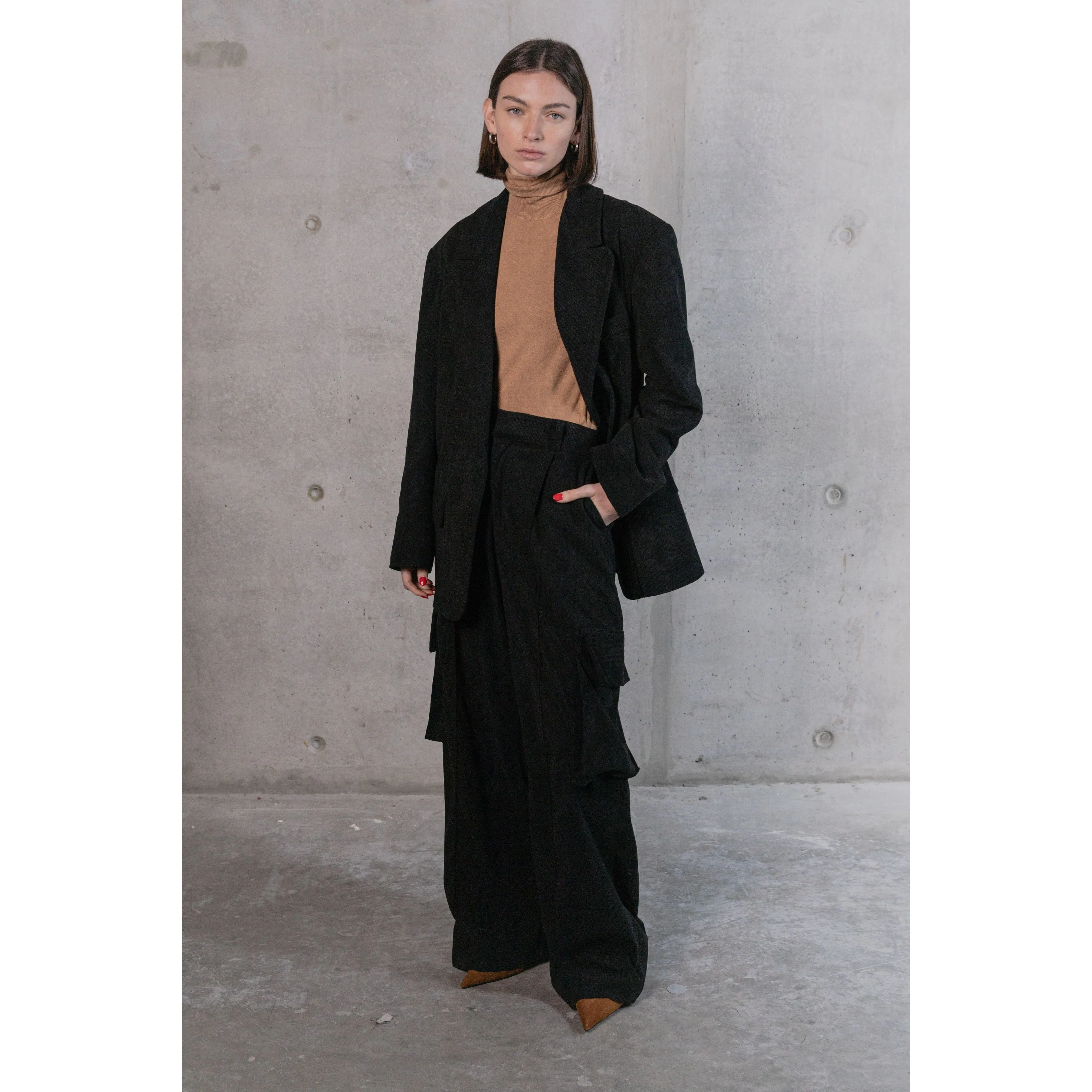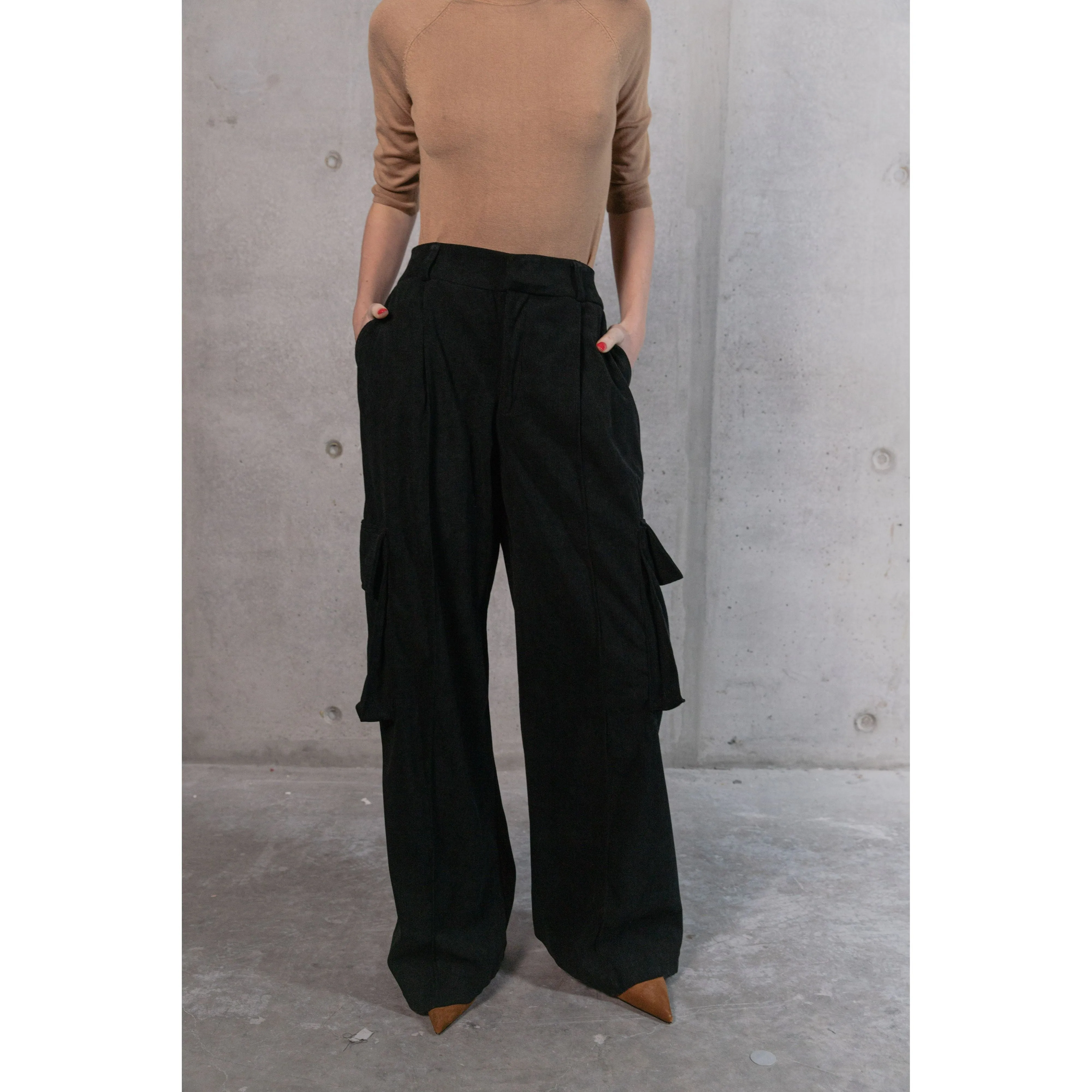 A hybrid of tailored and cargo styles, our best seller 'Paula' pants makes a comeback in our favorite fabric for the season: corduroy. They have sharply pressed pleats running from the high-rise waist through the wide legs.
