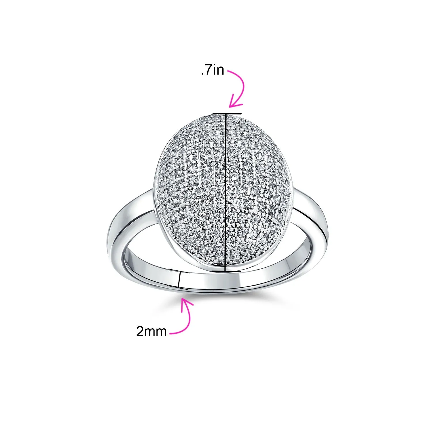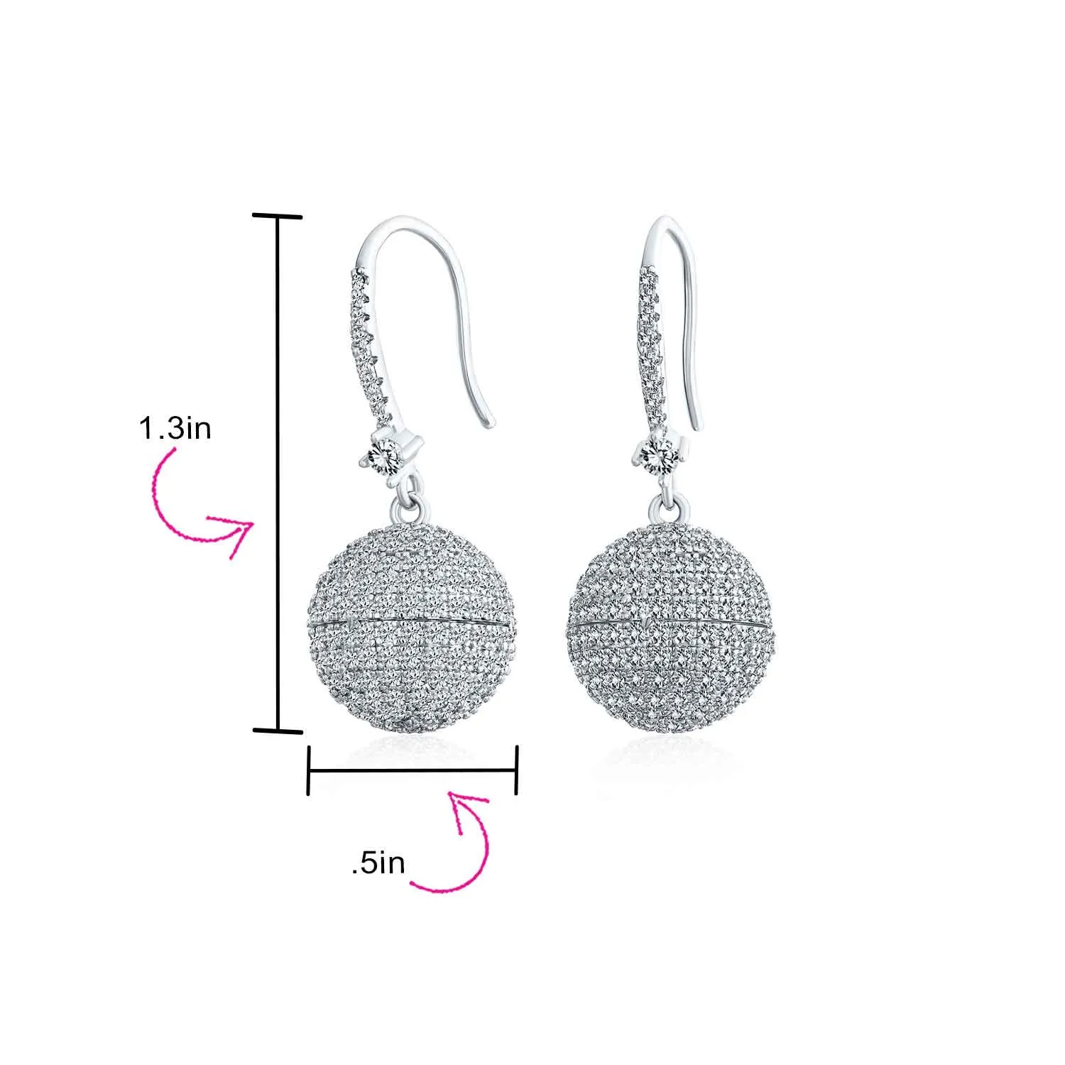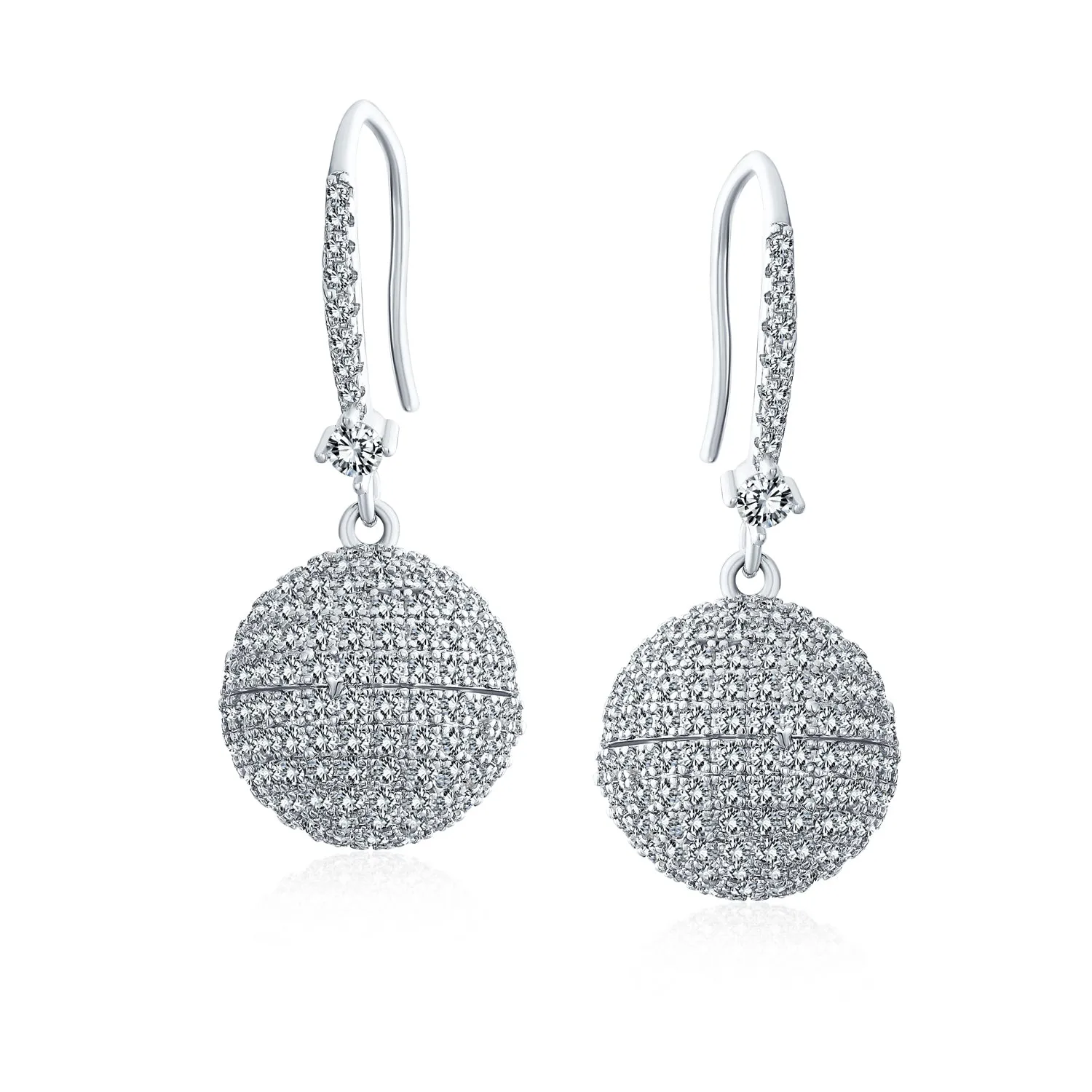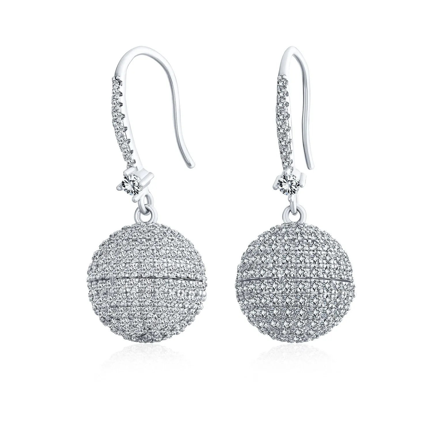 Disco Ball Drop Pave CZ Statement Prom Earrings Round Silver Plated