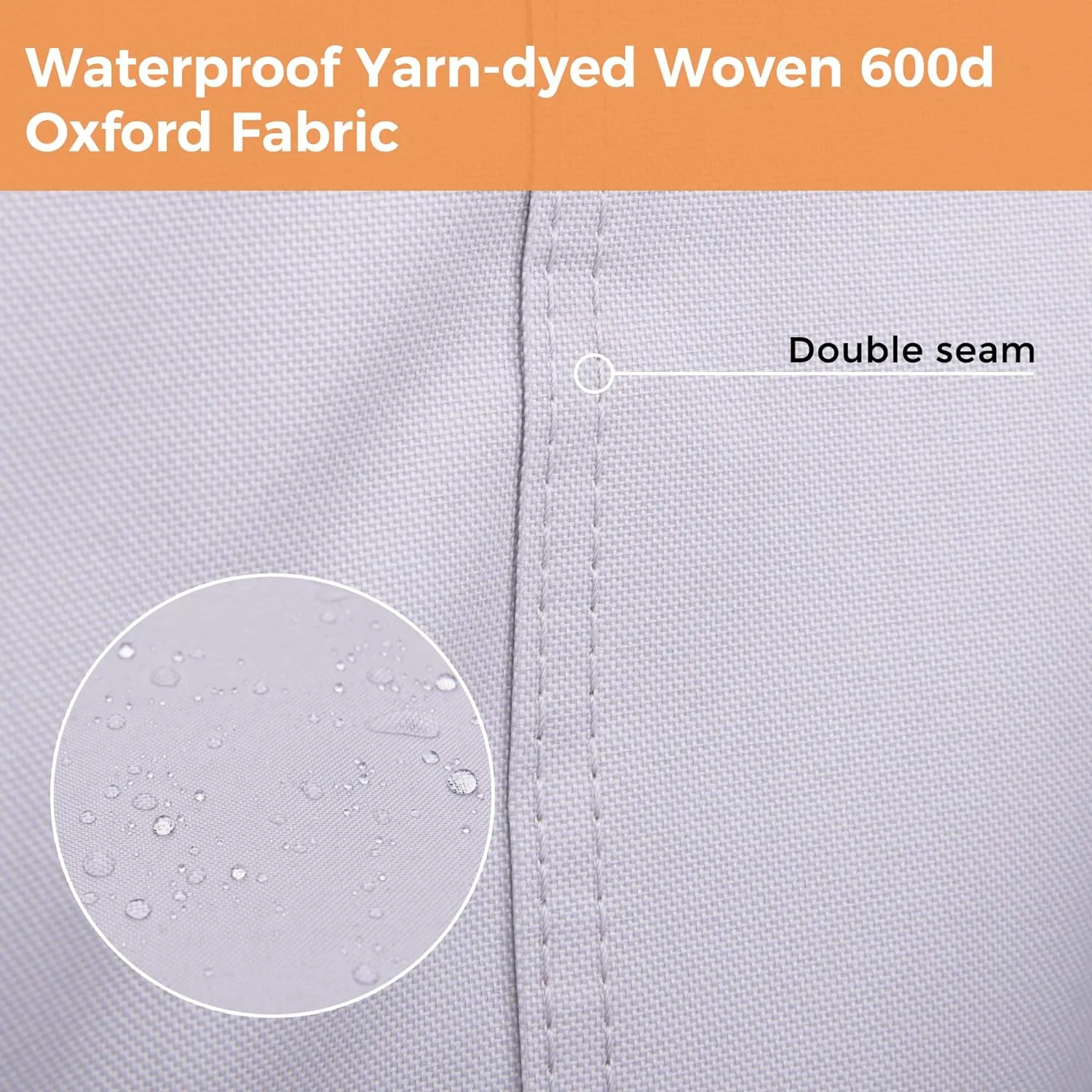 - Crafted from Weather-Resistant 600D Oxford Fabric: Our furniture cover is constructed from rugged 600 denier oxford fabric. This durable material is designed to withstand the harshest weather conditions, keeping your outdoor furniture safe and dry. Its gray-tonal, yarn-dyed woven texture not only adds a touch of style but also resists fading, ensuring your cover looks great season after season.