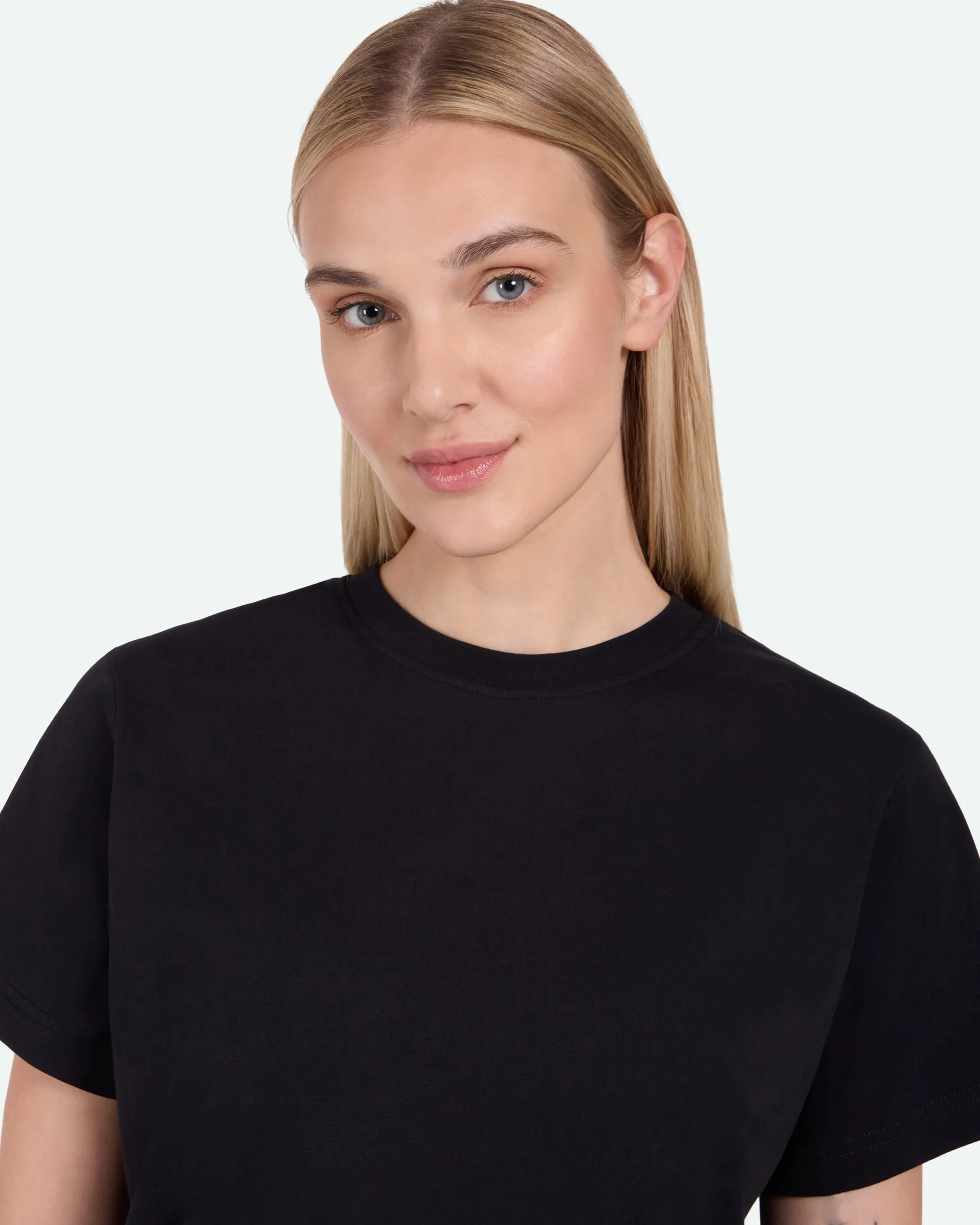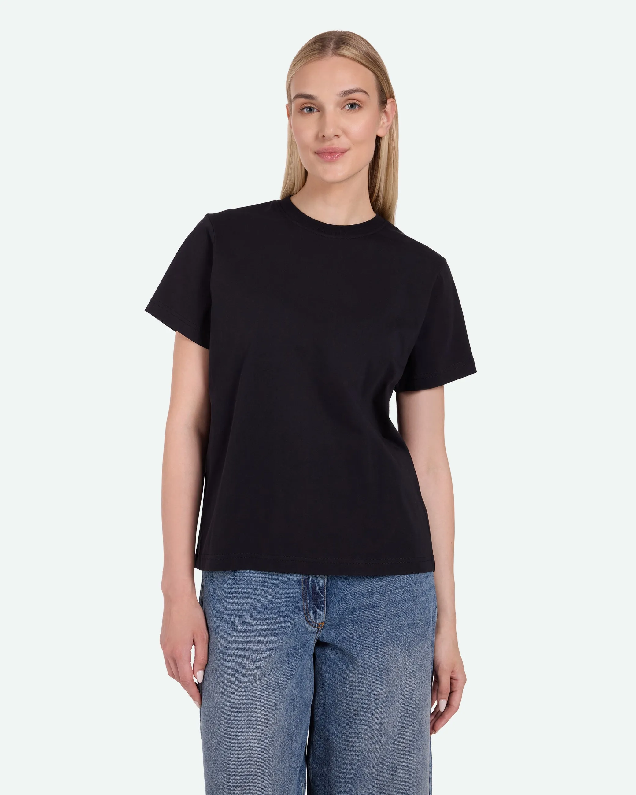 Lilou is a short sleeved T-shirt made from 100% organic cotton for a soft quality. The T-shirt has a regular fit and is designed with an O-neck. The model is 180 cm tall and wears a size small.