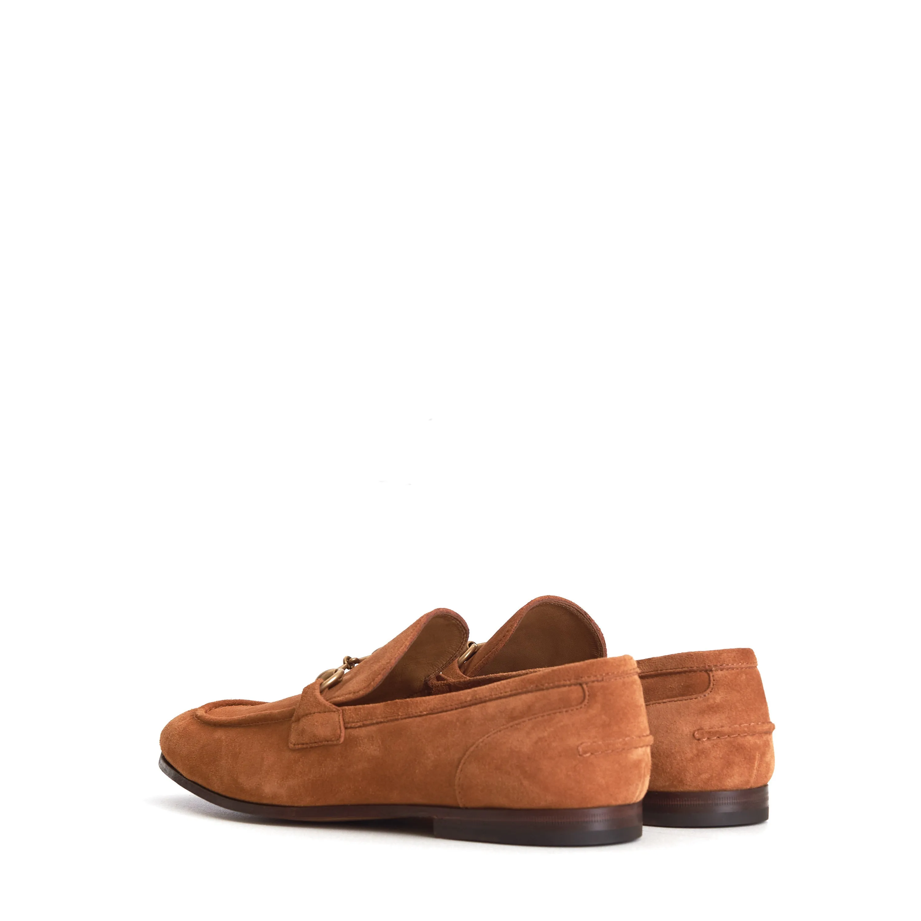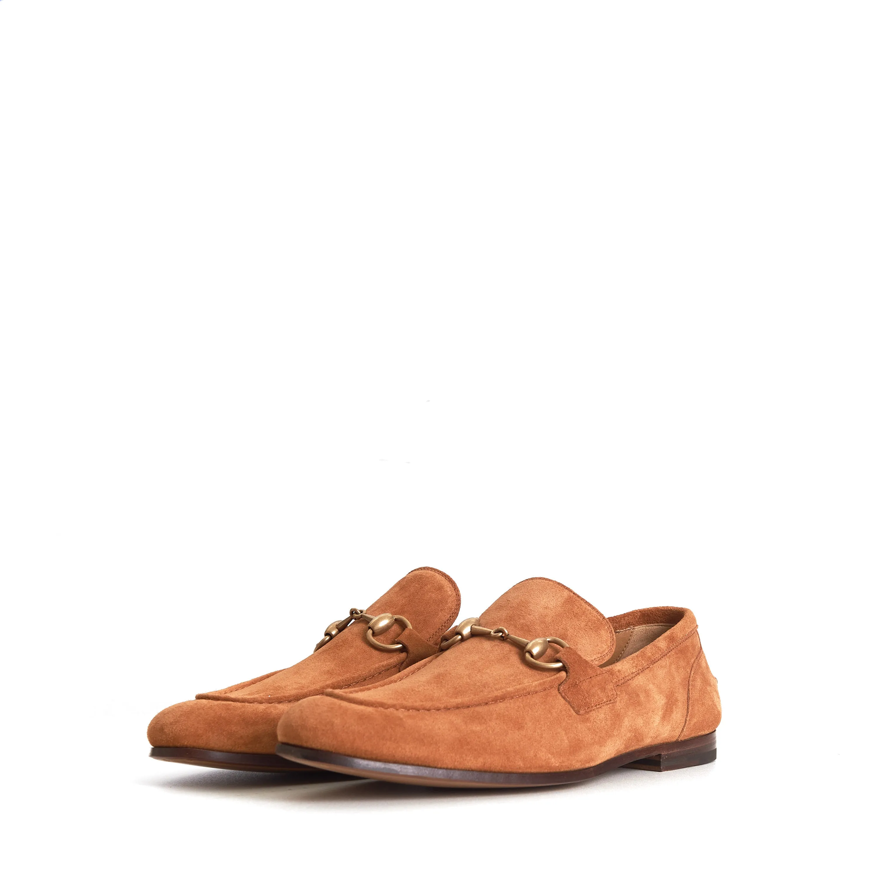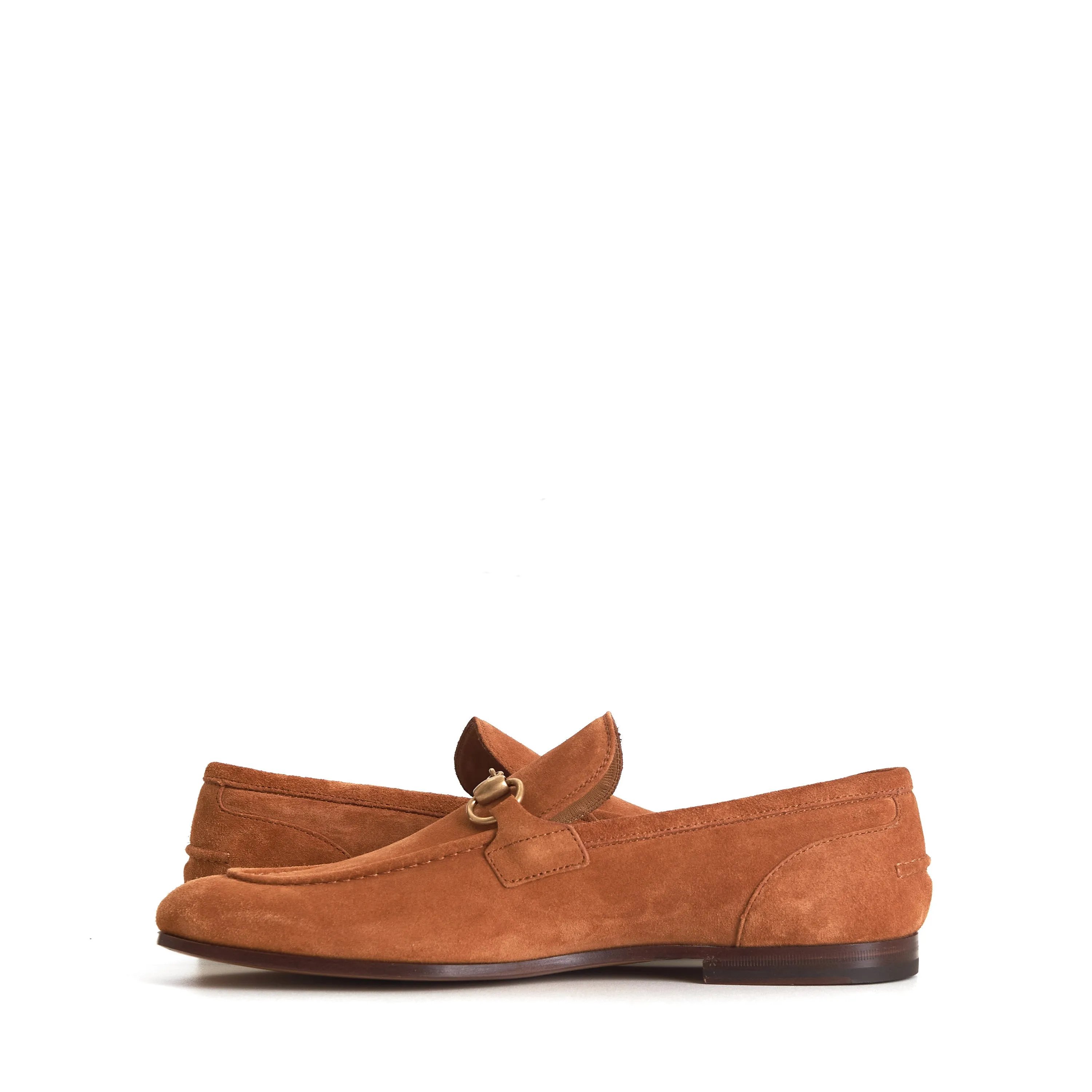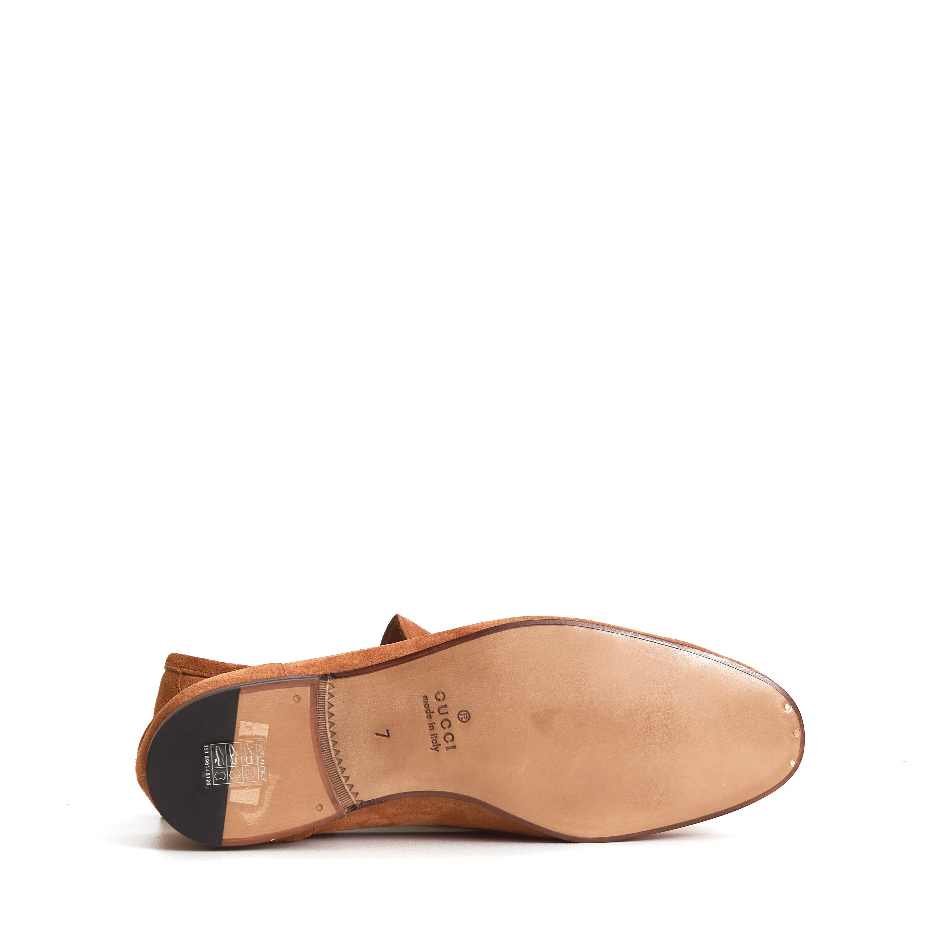 The traditional loafer is reimagined through the Gucci lens with unique details that reference the house. Taking inspiration from its equestrian roots, the silhouette is presented here in soft brown suede with a gold-toned horsebit detail.