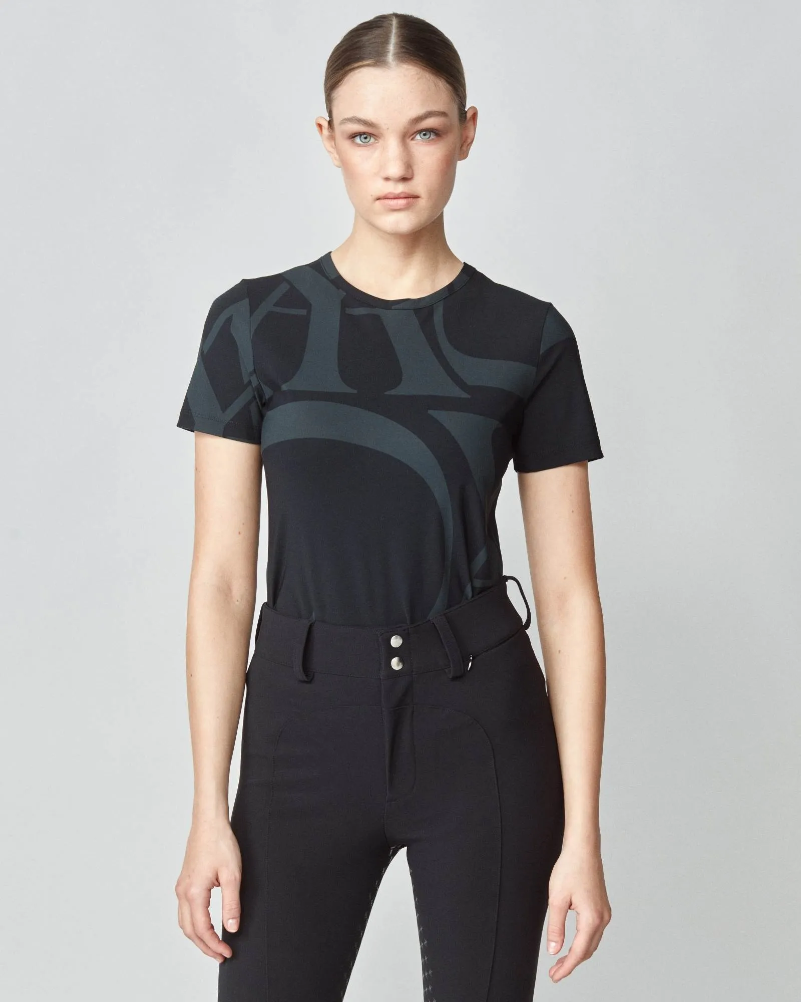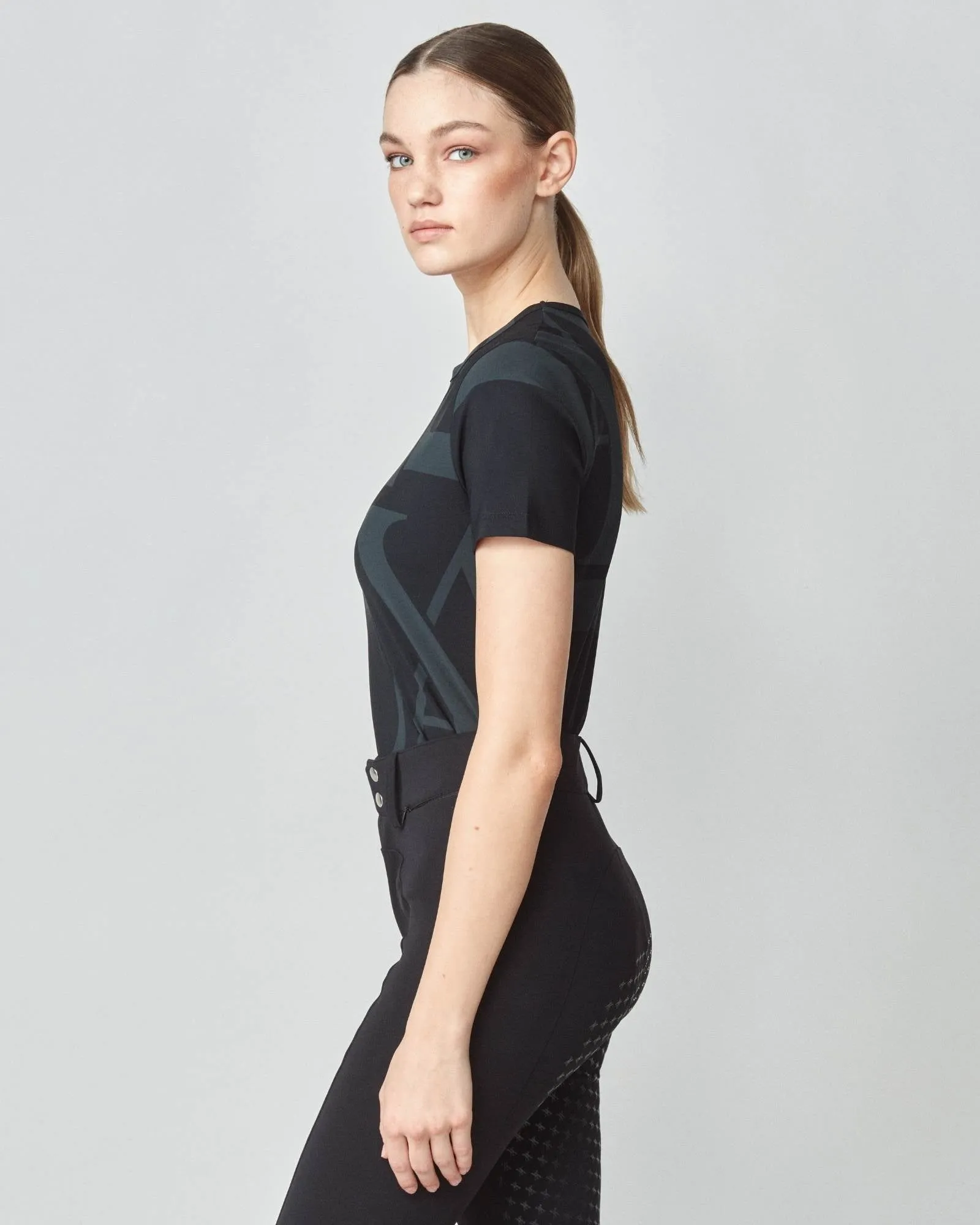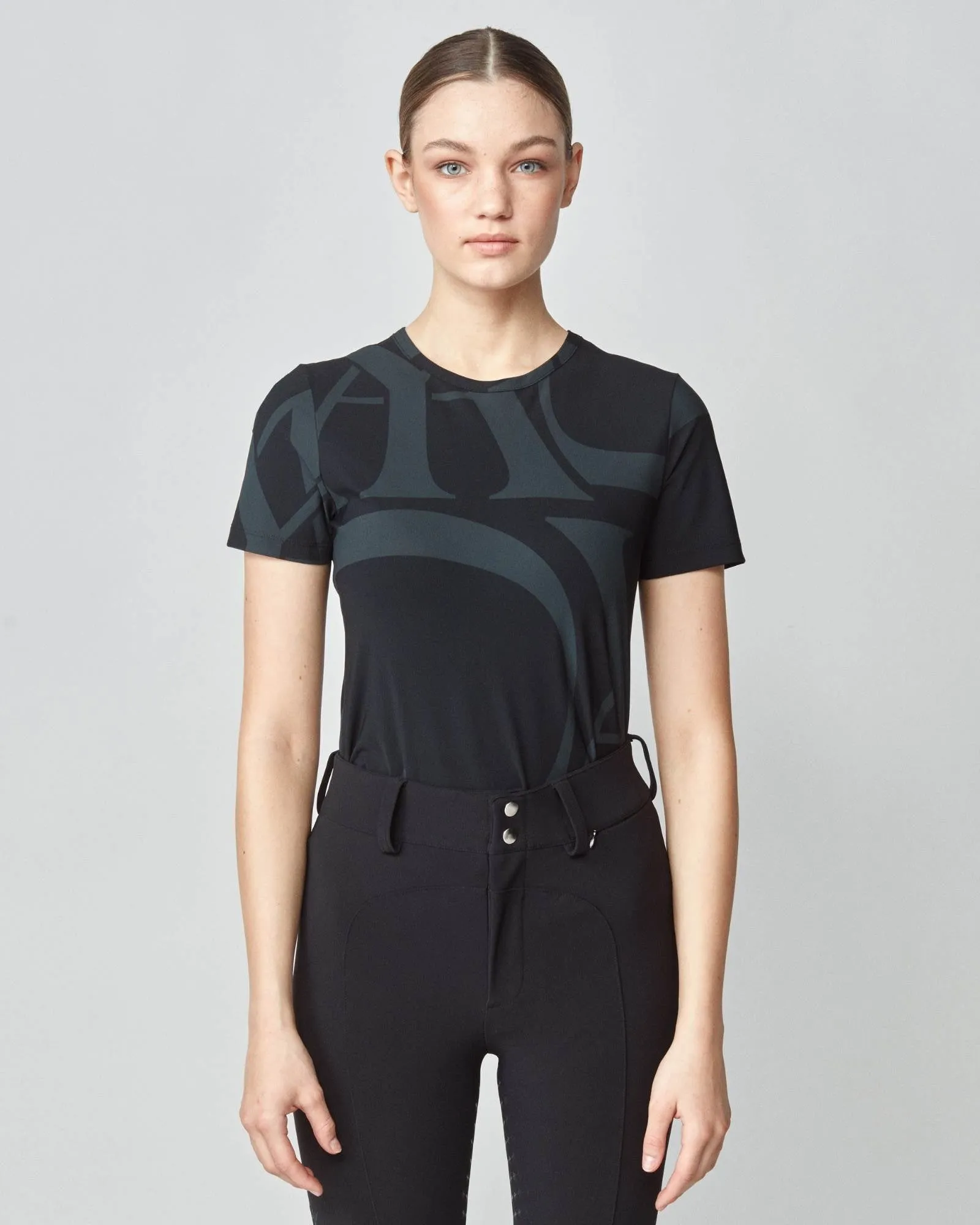 Crafted to complement its best-selling long sleeve variant, Yagya's Monogram Short Sleeve stands out as an essential base layer for every equestrian wardrobe. This fitted short sleeve shirt is adorned with Yagya’s iconic monogram. It's meticulously cut from a premium Italian jersey known for its breathability, swift drying capabilities, and integrated UV protection, ensuring both comfort and durability. In addition to its lightweight feel, the fabric is gentle against the skin, offering an exceptional wear experience. Each shirt is masterfully sewn in Portugal, Europe.