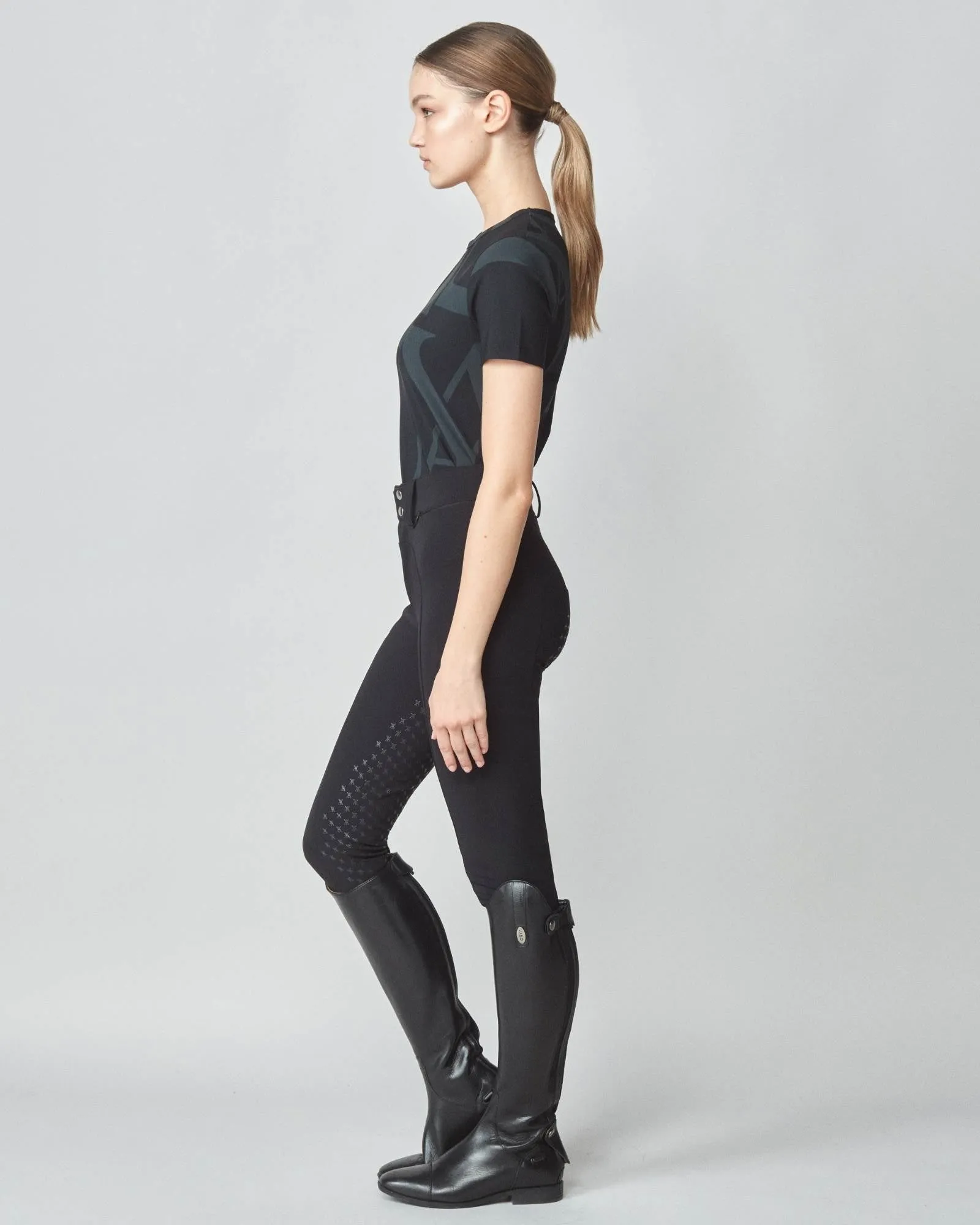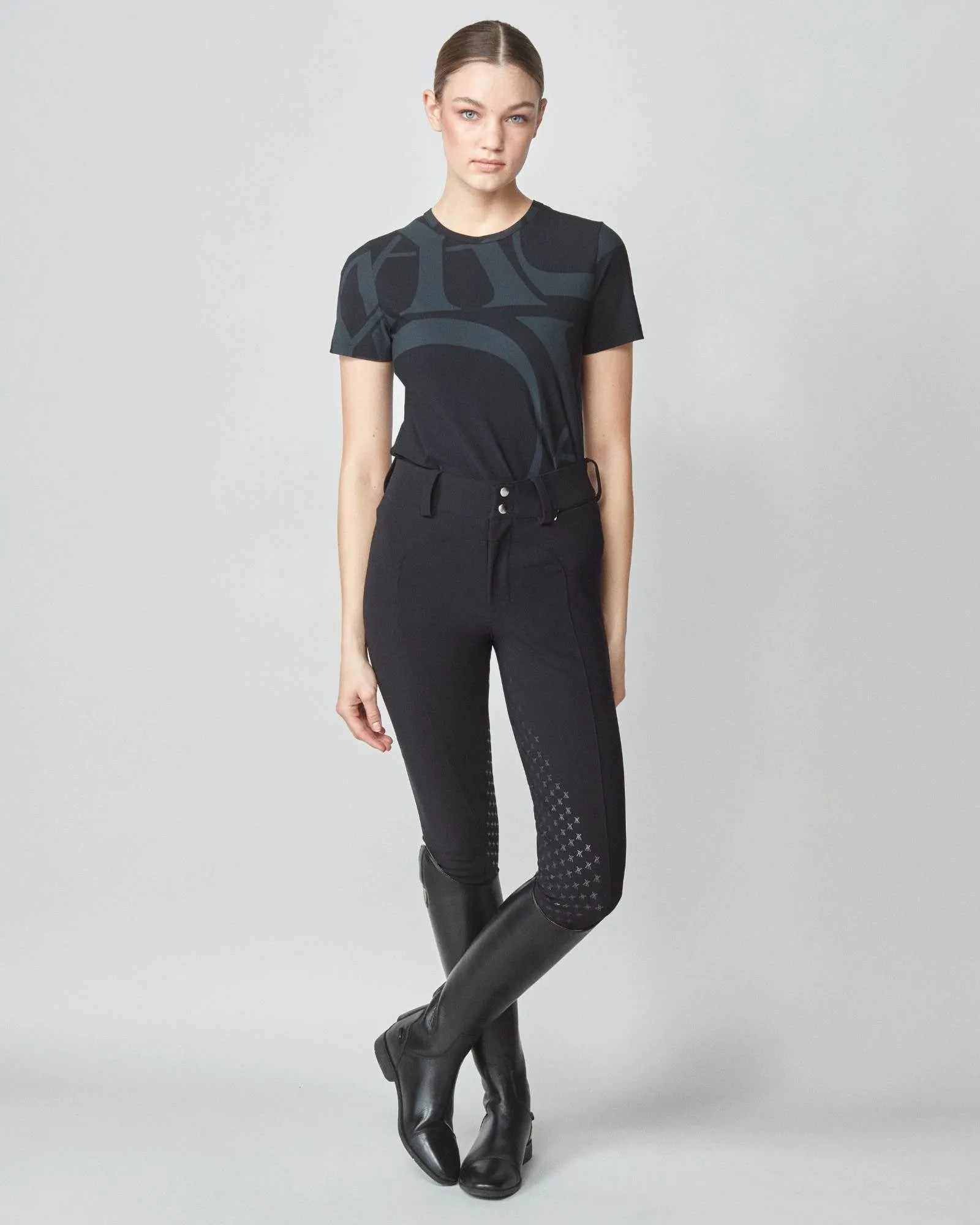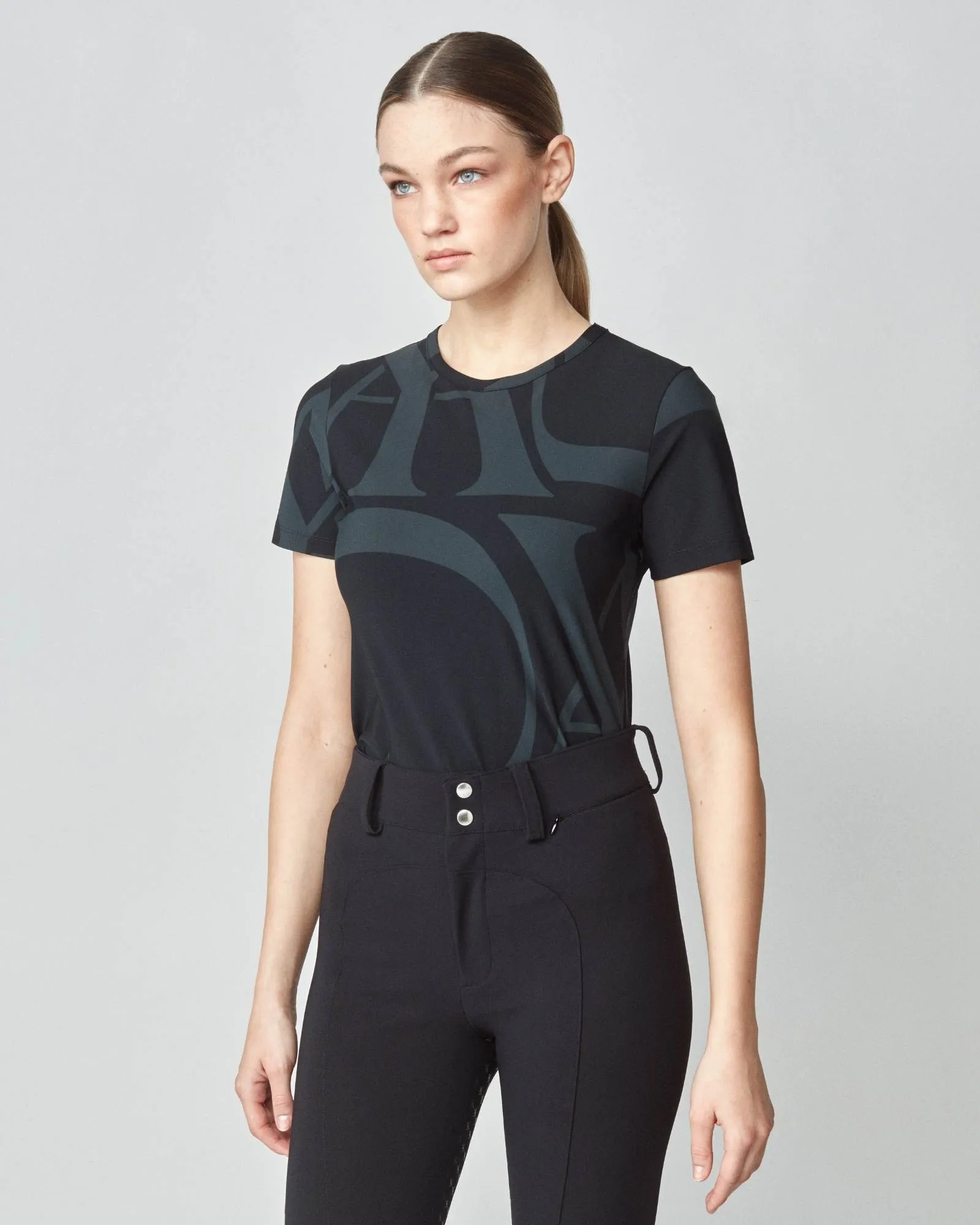 Crafted to complement its best-selling long sleeve variant, Yagya's Monogram Short Sleeve stands out as an essential base layer for every equestrian wardrobe. This fitted short sleeve shirt is adorned with Yagya’s iconic monogram. It's meticulously cut from a premium Italian jersey known for its breathability, swift drying capabilities, and integrated UV protection, ensuring both comfort and durability. In addition to its lightweight feel, the fabric is gentle against the skin, offering an exceptional wear experience. Each shirt is masterfully sewn in Portugal, Europe.