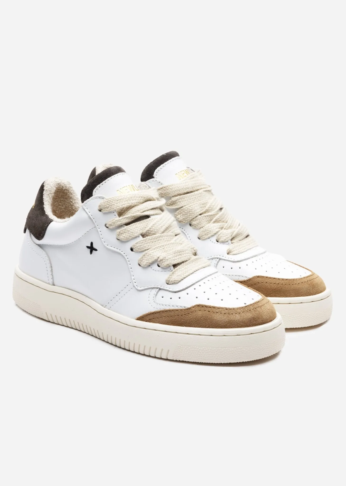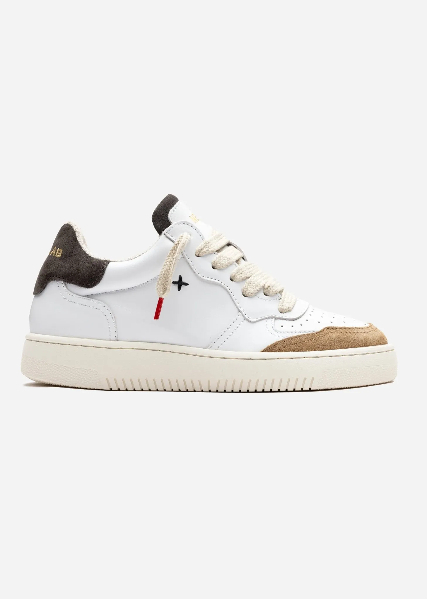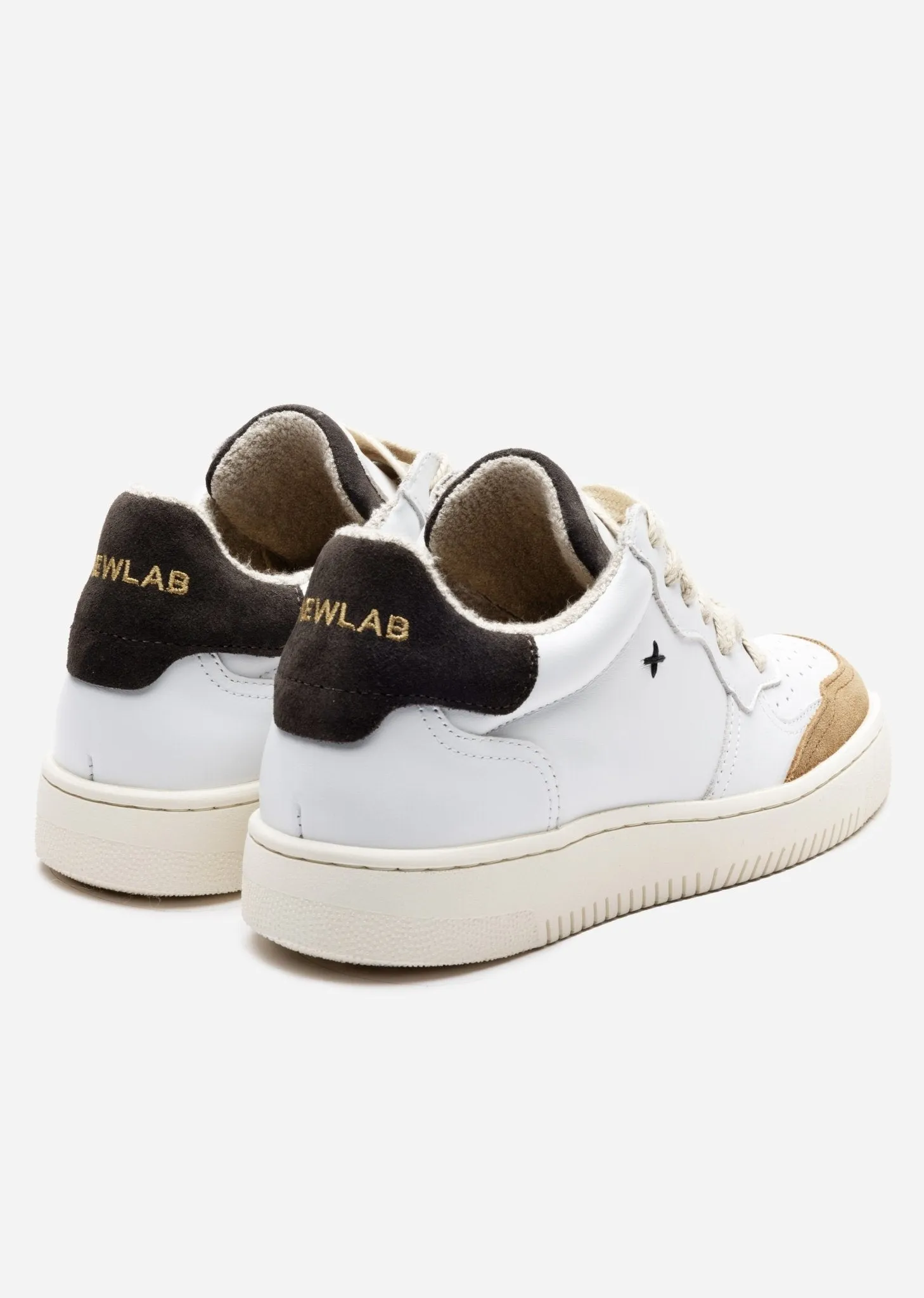 NEWLAB Sneaker in White Leather and Camel Suede.
