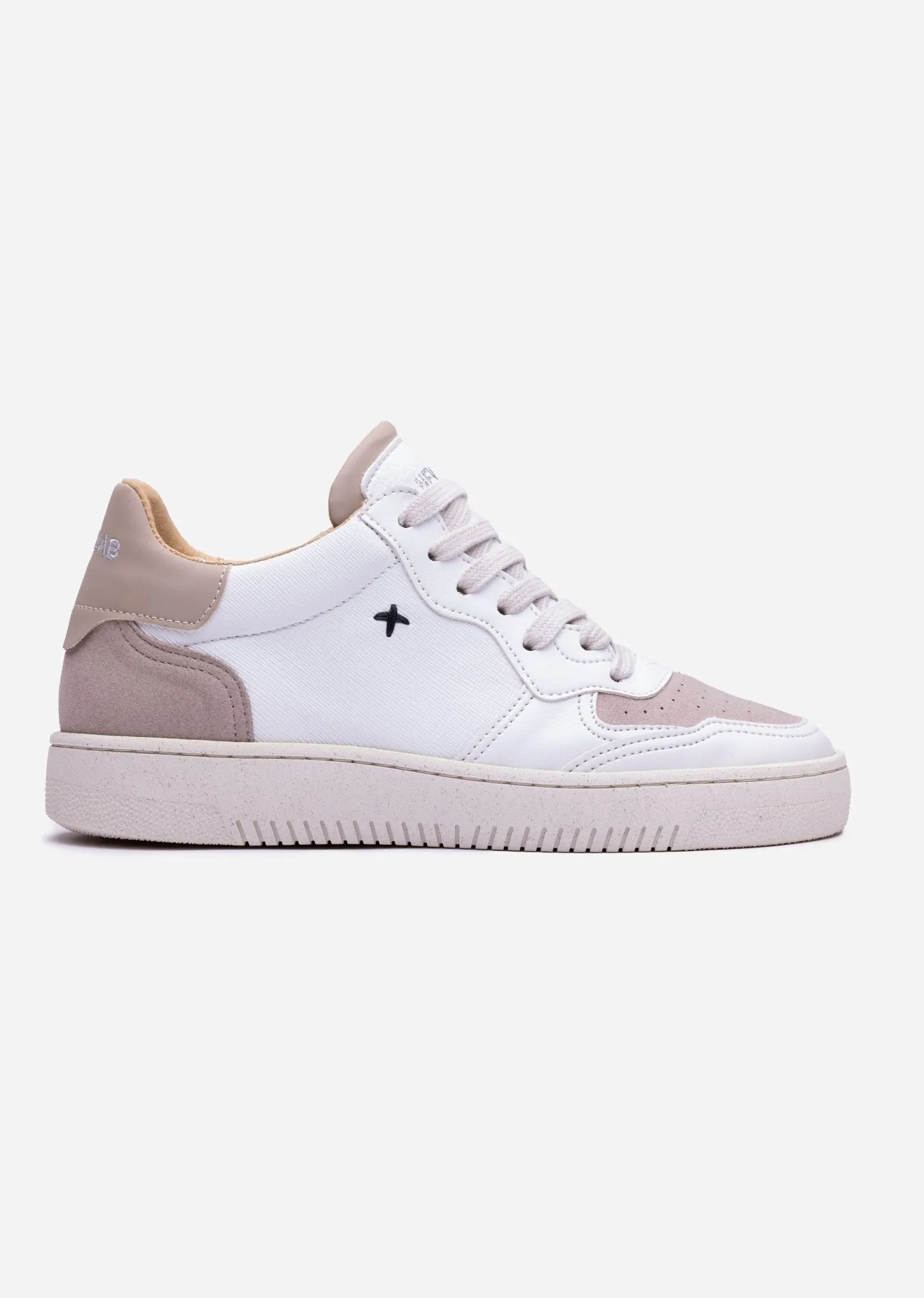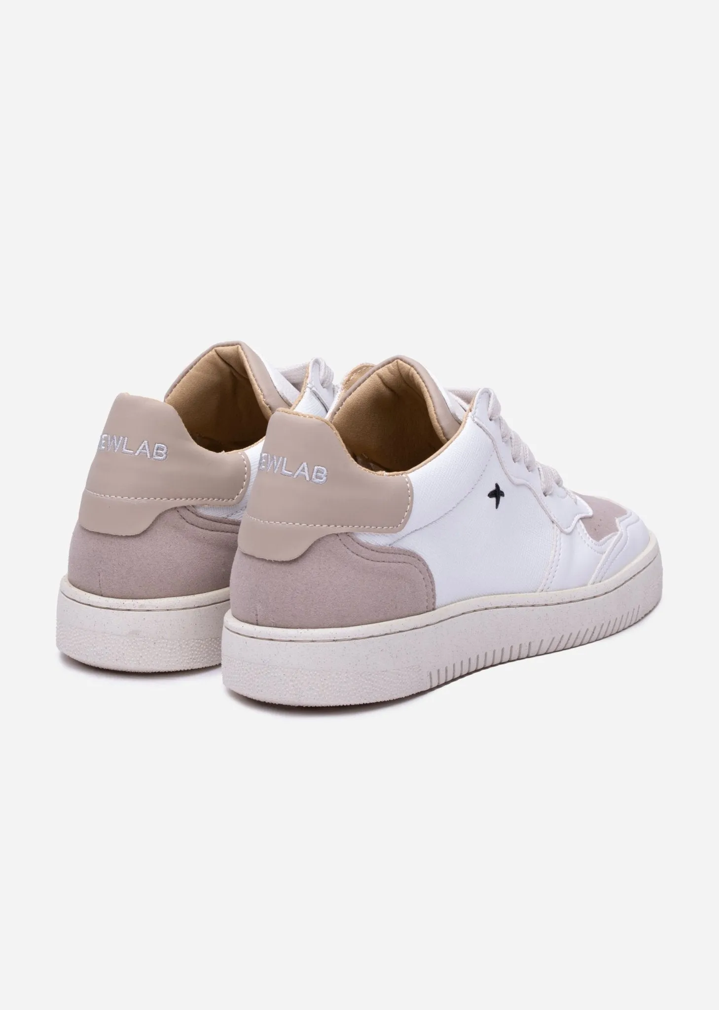NEWLAB SUSTAINABLE Sneaker in White AppleSkin and Nude Microfiber.Light Grey Microfiber inserts.Beige inner lining.Cotton laces.NEWLAB logo on tongue and heel.Removable insole with cushioning for optimal comfort.Recycled coffee based outsole, Hand-sewn, Height: 3cm.Handmade in Portugal.