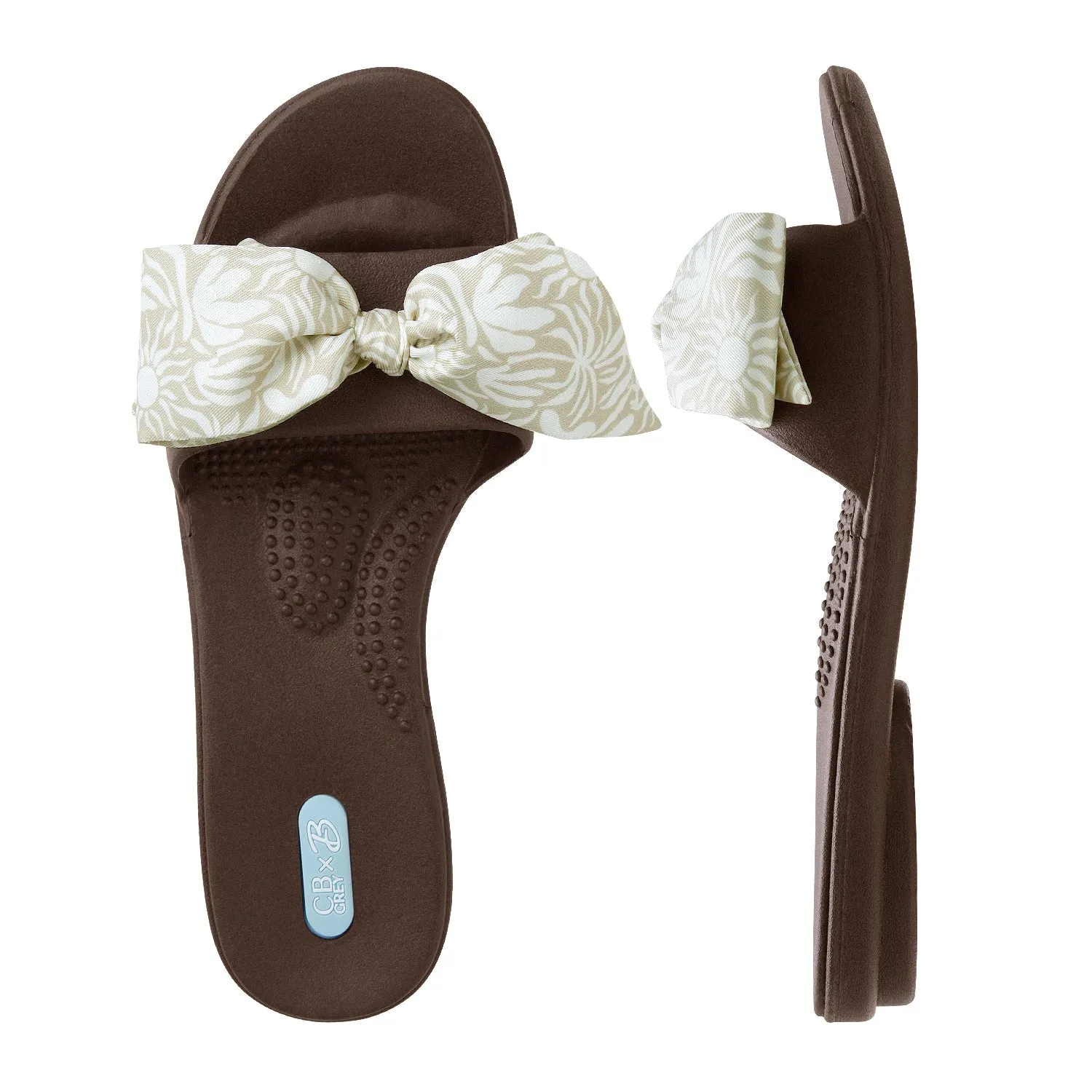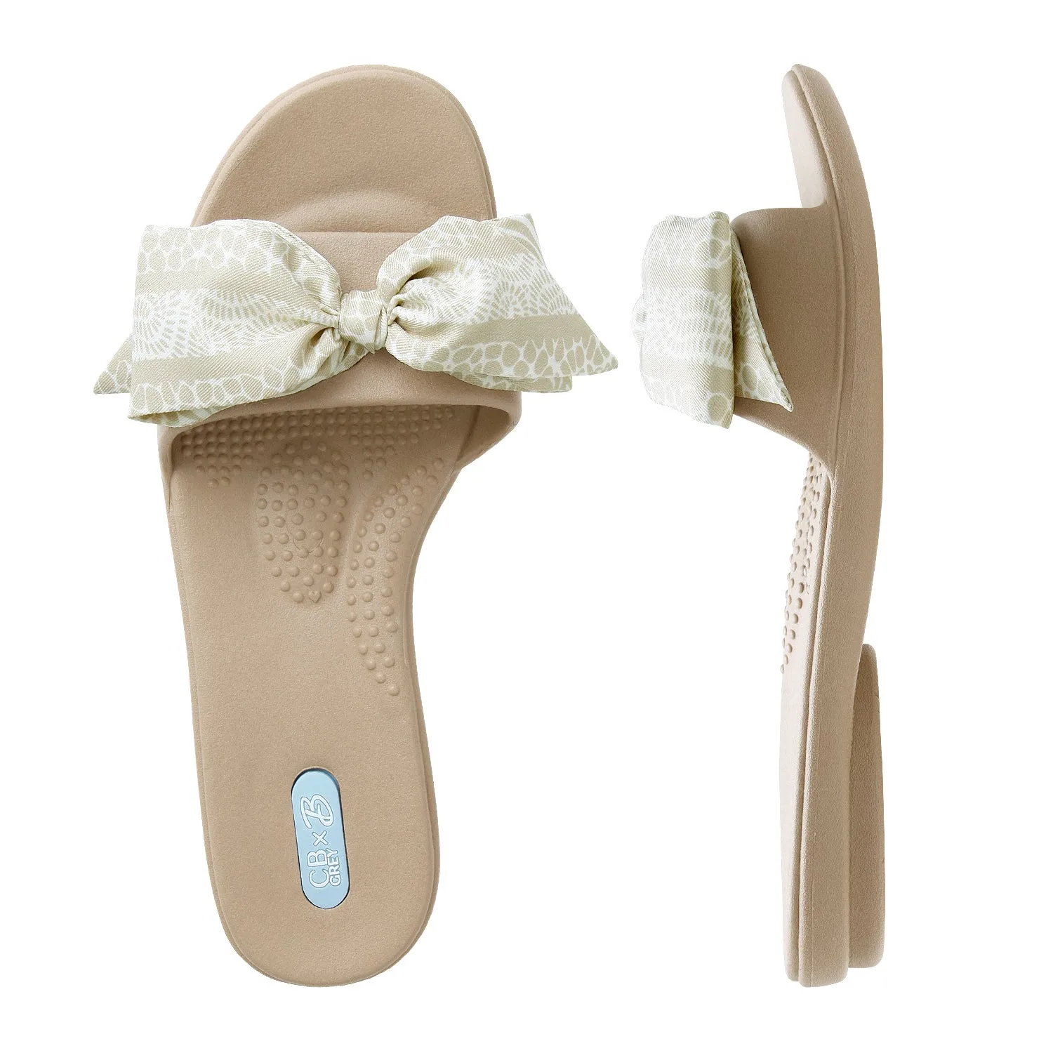Our newest collab with luxury accessories brand CB Grey. Our most popular Grace Slide Sandals with exclusive bow designs. These bows can also mix and match and can be swapped out with additional scarf sets (sold separately). These bows/scarves will only work with the CB Grey x Oka-B Collaboration styles.