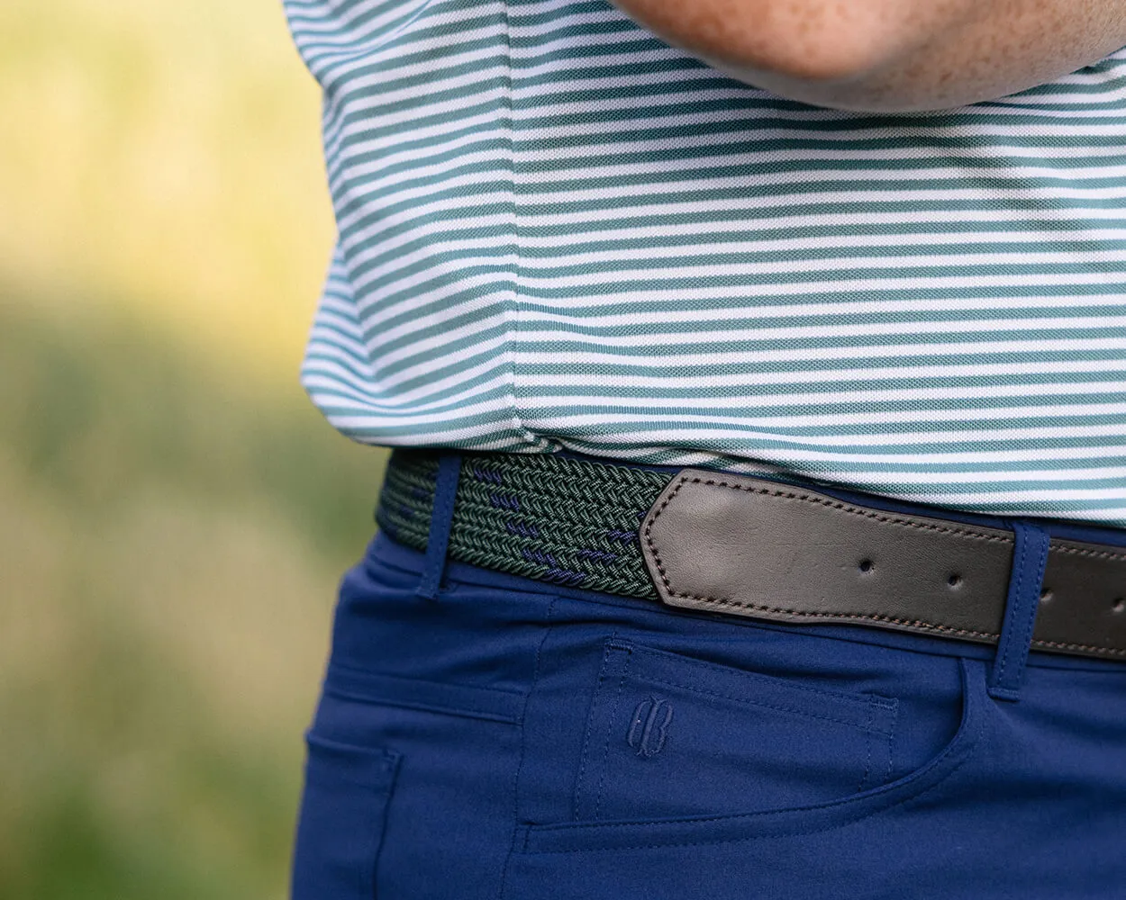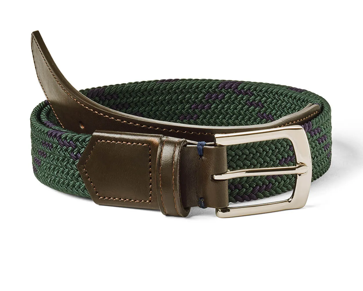 The Fischer Belt: Pine & Navy Dogleg Stripe
