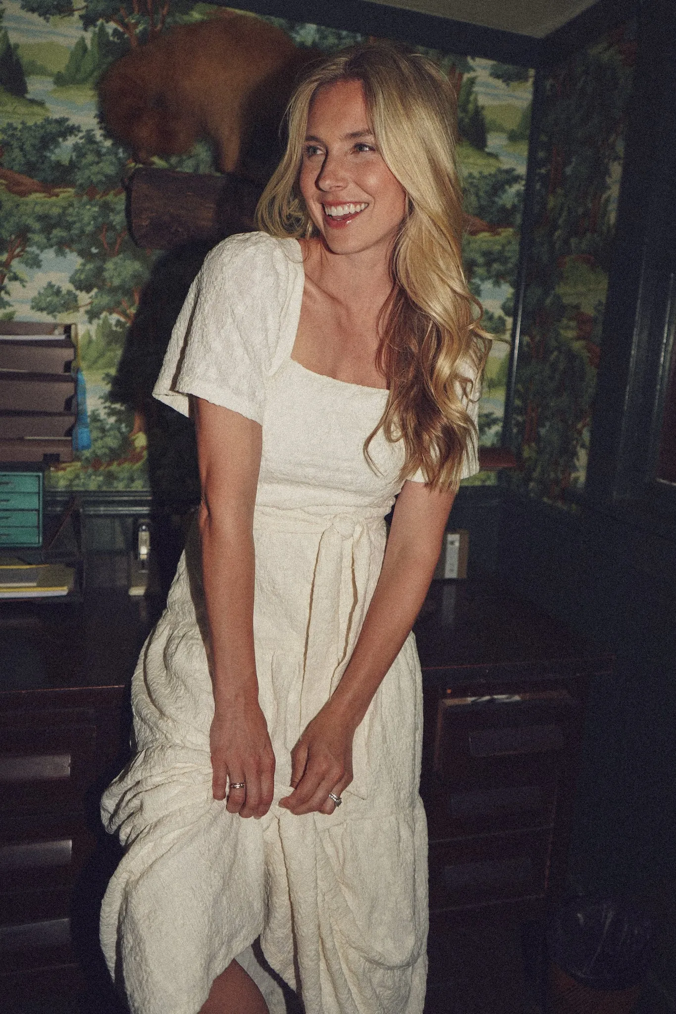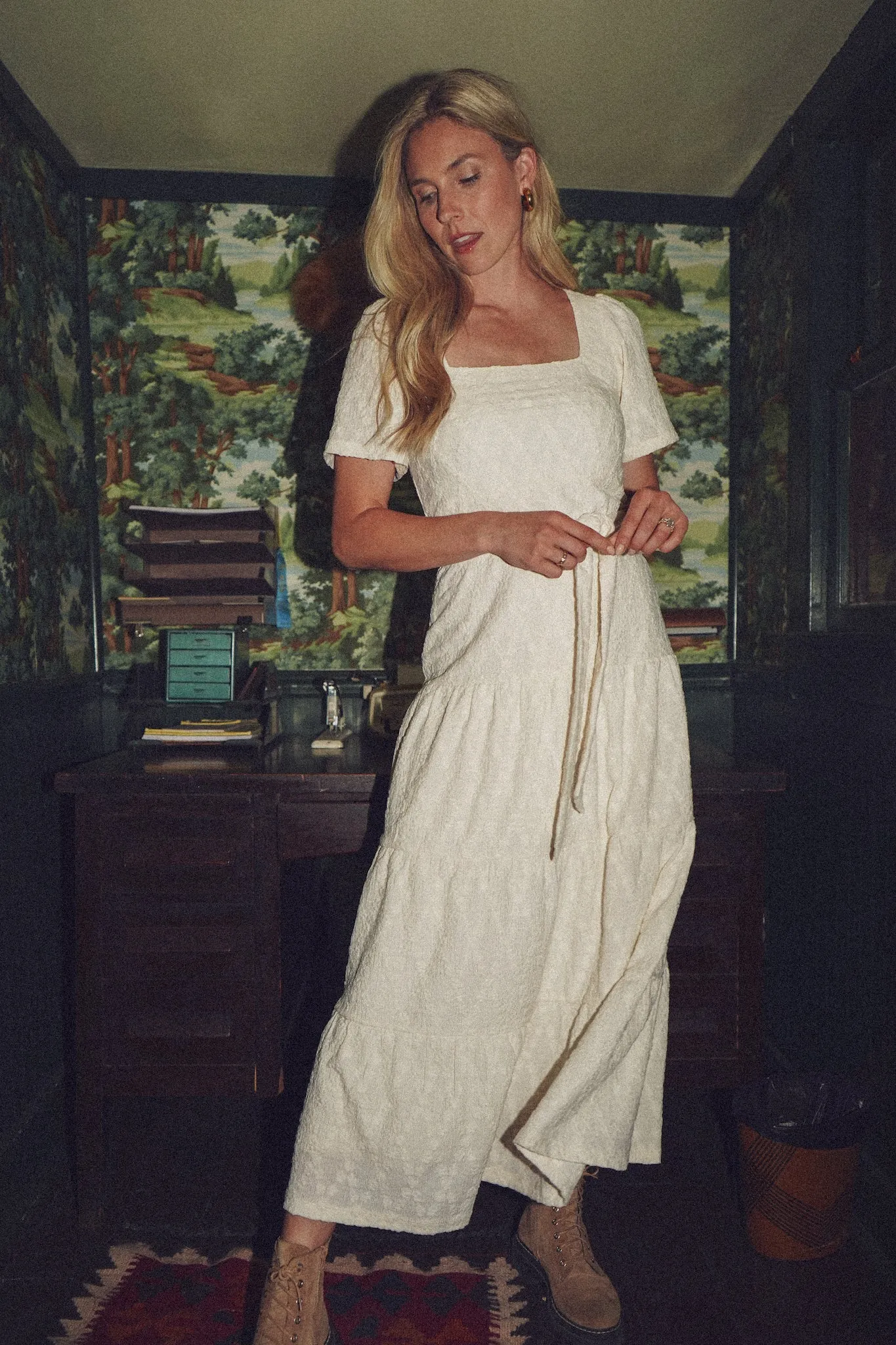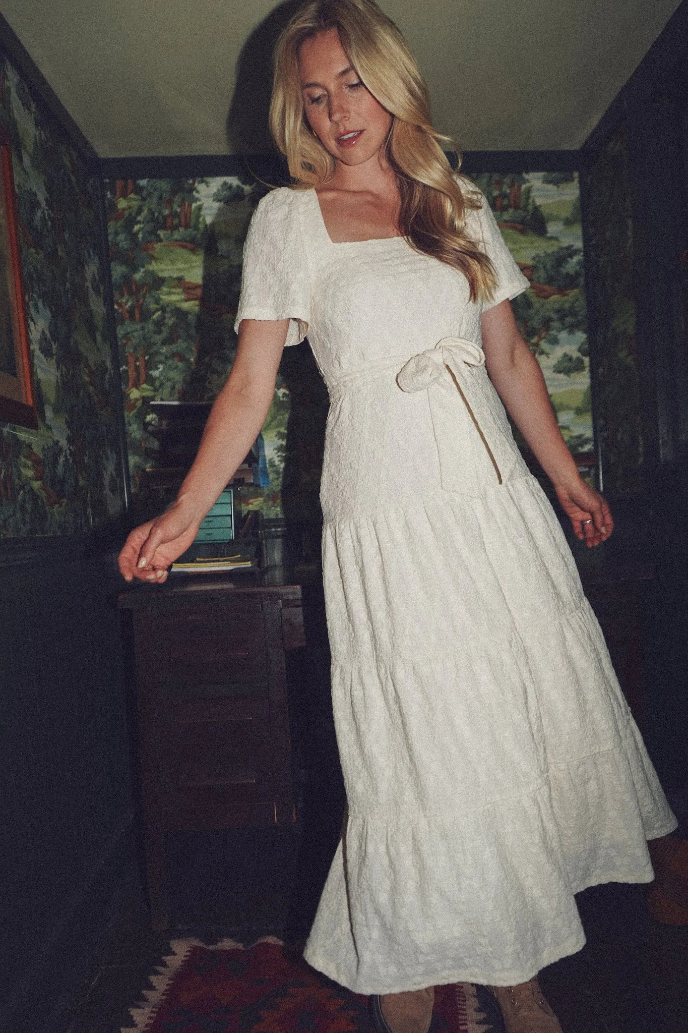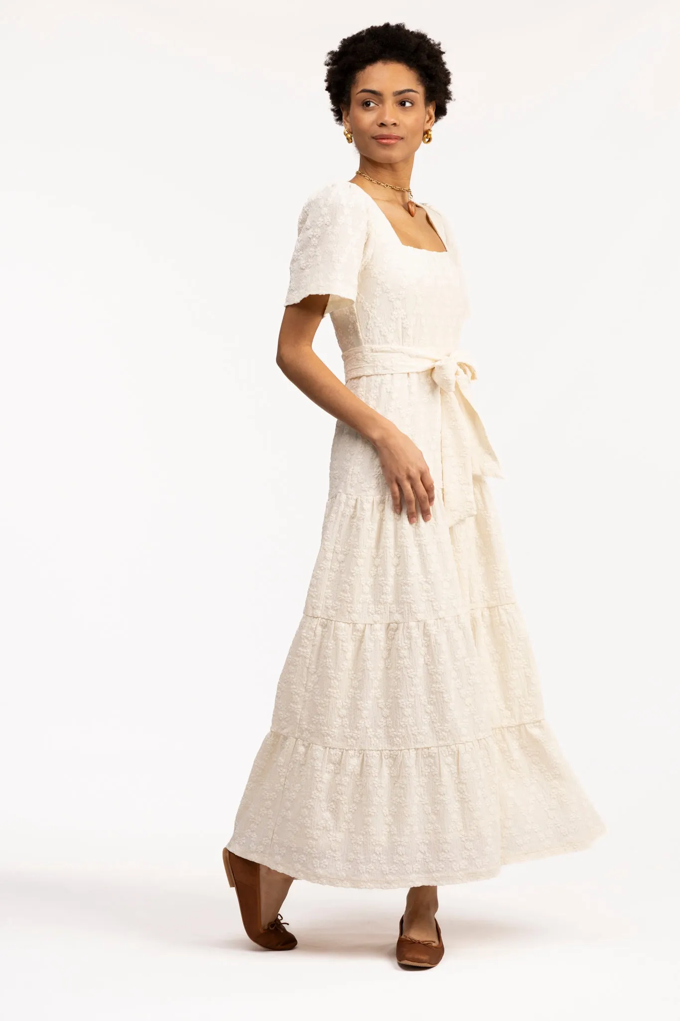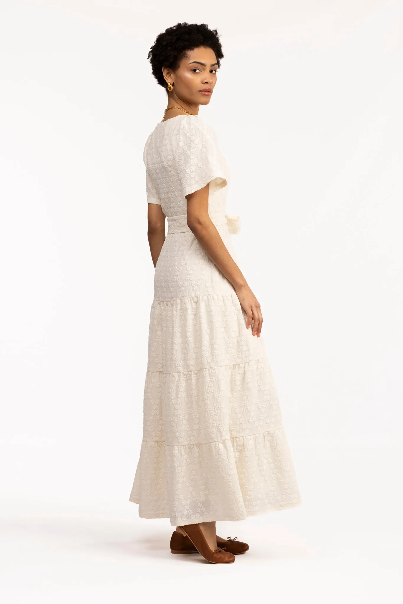 Make our new maxi your wardrobe staple of the season. We love the flutter sleeve and tie waistband.