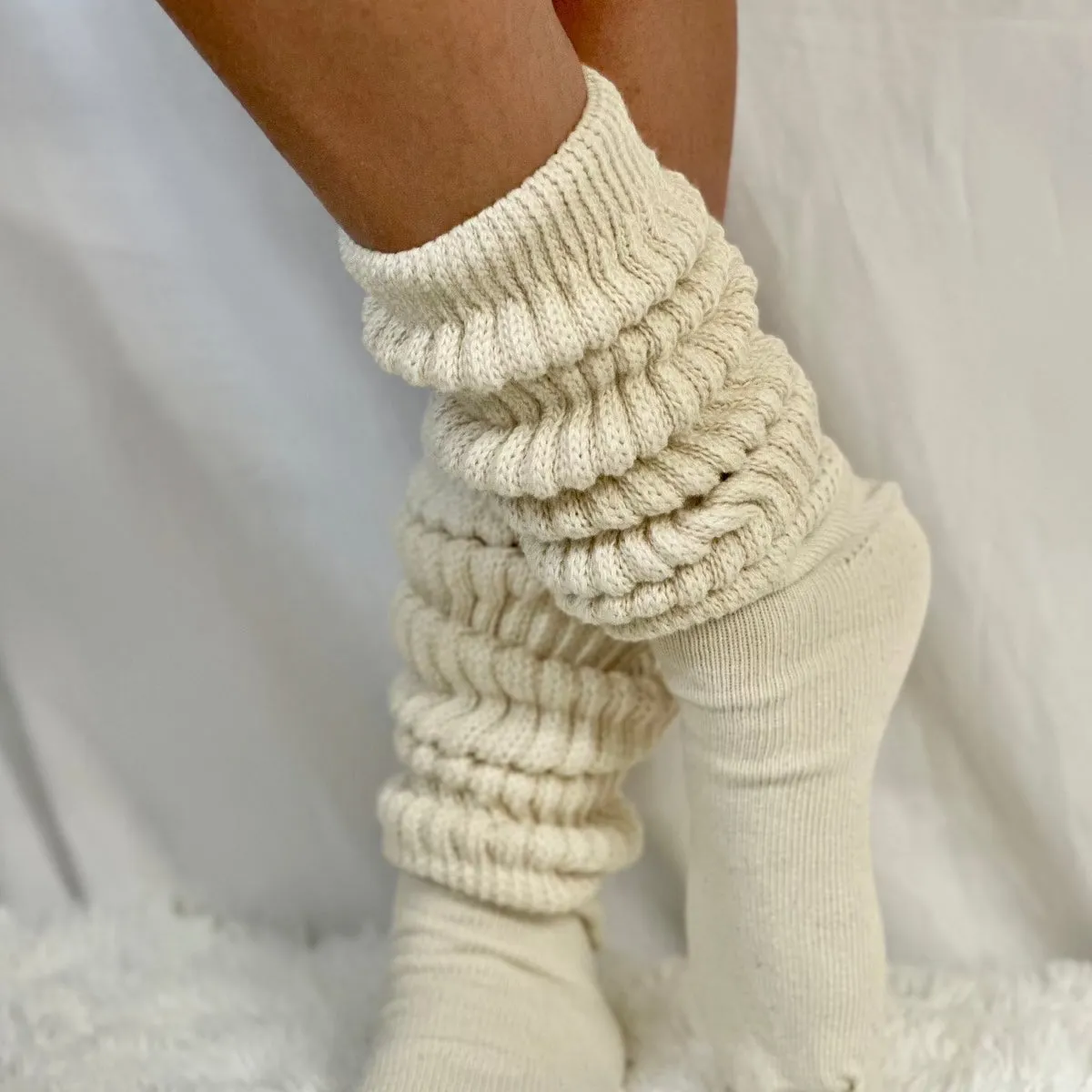 Our ULTIMATE socks are simply the best quality AMERICAN MADE slouch socks for women. Take your sock style to the next level with our cotton slouch socks--made with the highest quality of yarn for a luxuriously soft and snag-free fit. If you liked our past slouch socks you will fall in love with our new version. These socks are knitted exclusively for us. Comfort and fashion have never looked (or felt) so good.